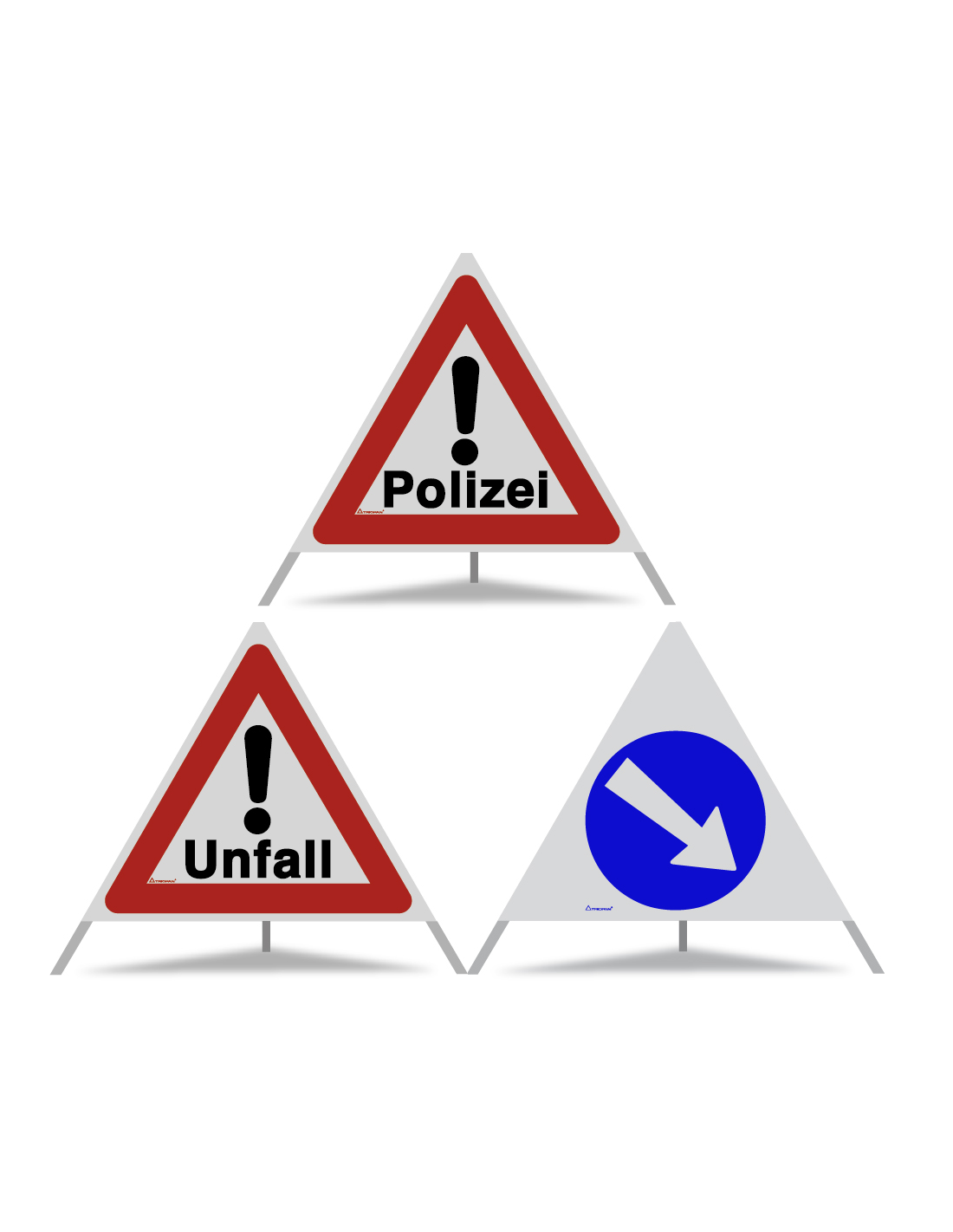TRIOPAN Faltsignal 90 Kombi R2 Retro-reflektierend mit Etui (Polizei - Unfall - Rechts umfahren)