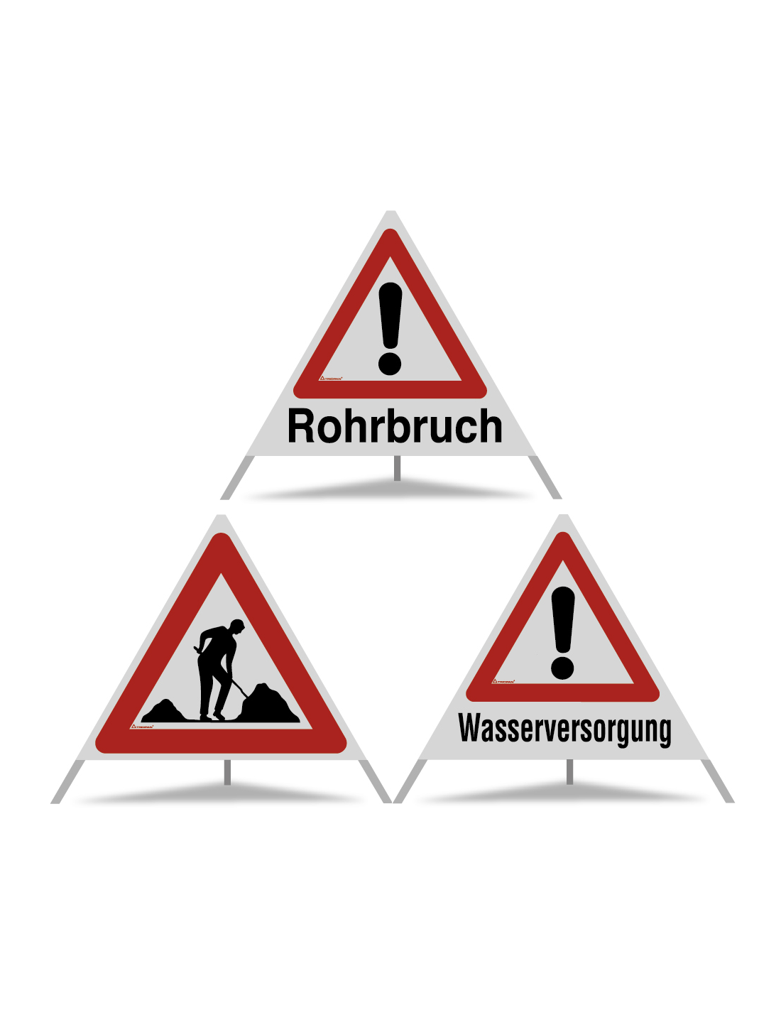 TRIOPAN Faltsignal 90 Kombi R2 Retro-reflektierend mit Etui (Rohrbruch - Baustelle - Wasserversorgung)