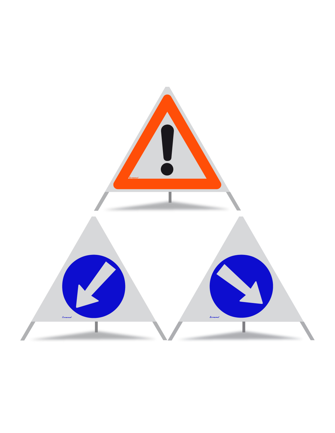 Die TRIOPAN Faltsignale sind die ideale Lösung für temporäre Signalisation von Gefahrenstellen. Dank ihres Feder-Mechanismus sind sie einfach und schnell aufzubauen und lassen sich platzsparend verstauen. Jedes Faltsignal wird mit einem praktischen Etui geliefert, um einen sicheren Transport zu gewährleisten.