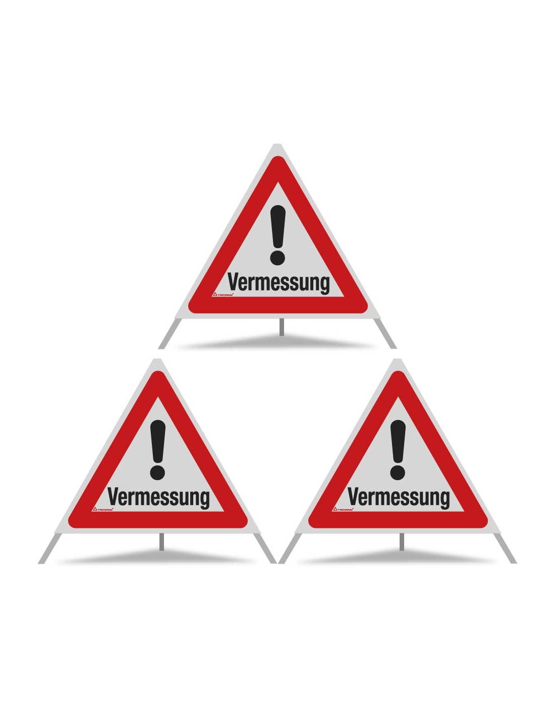 Das Faltsignal eignet sich hervorragend für Vermessungsarbeiten in der Schweiz, dank der entsprechenden Verkehrszeichen-Codes. Die klare Beschriftung "Vermessung" ist innen im Signal platziert, um eine eindeutige Identifizierung zu gewährleisten.