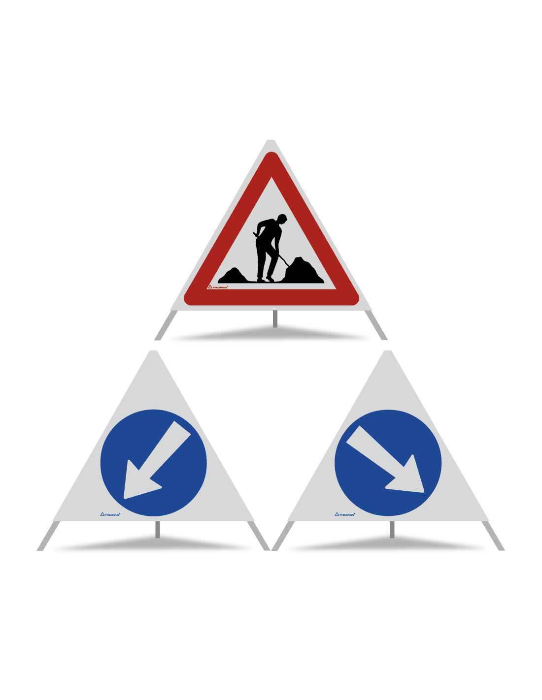 TRIOPAN Faltsignal 70 R2 Retro-reflektierend Kombi mit Etui (Baustelle - Links umfahren - Rechts umfahren)