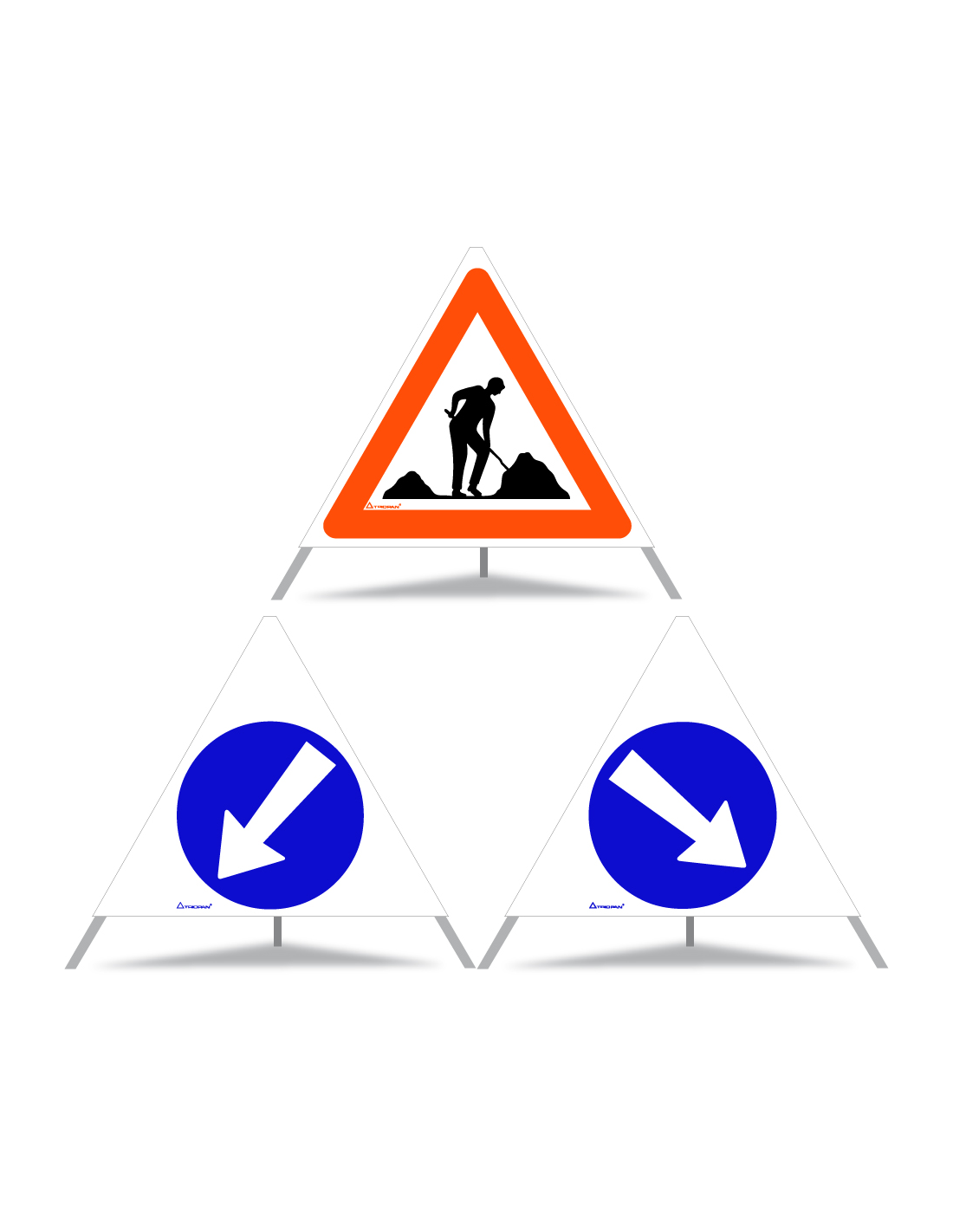 TRIOPAN Faltsignal 70 Tagesleuchtend Kombi mit Etui (Baustelle - Links umfahren - Rechts umfahren)
