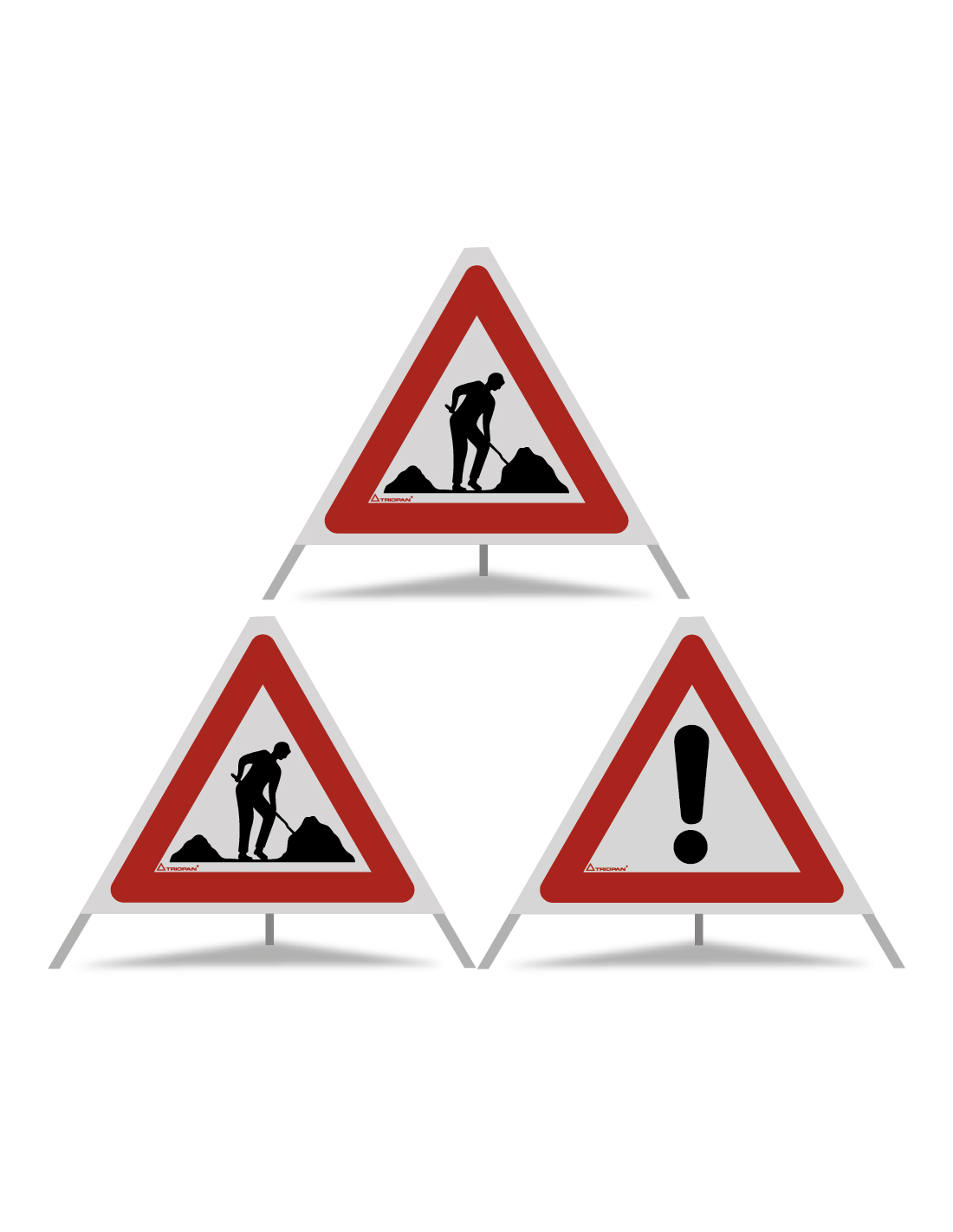 TRIOPAN Faltsignal 60 R2 Retro-reflektierend Kombi mit Etui (2x Baustelle - Andere Gefahren)
