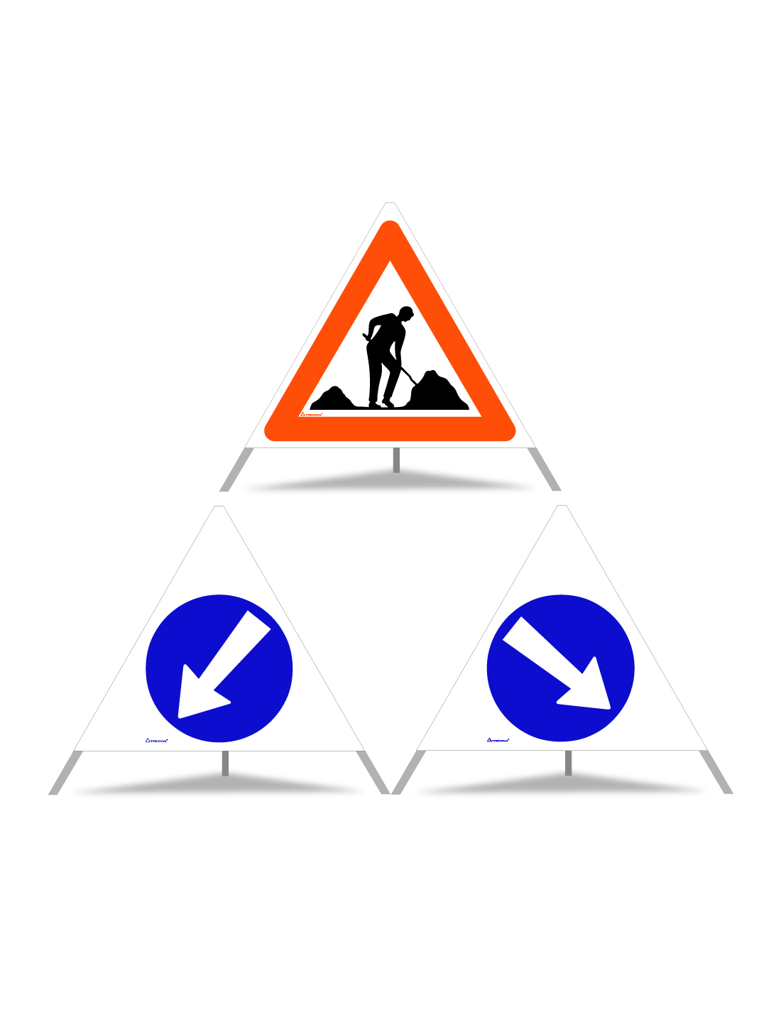 TRIOPAN Faltsignal 90 Tagesleuchtend Kombi mit Etui (Baustelle - Links umfahren - Rechts umfahren)