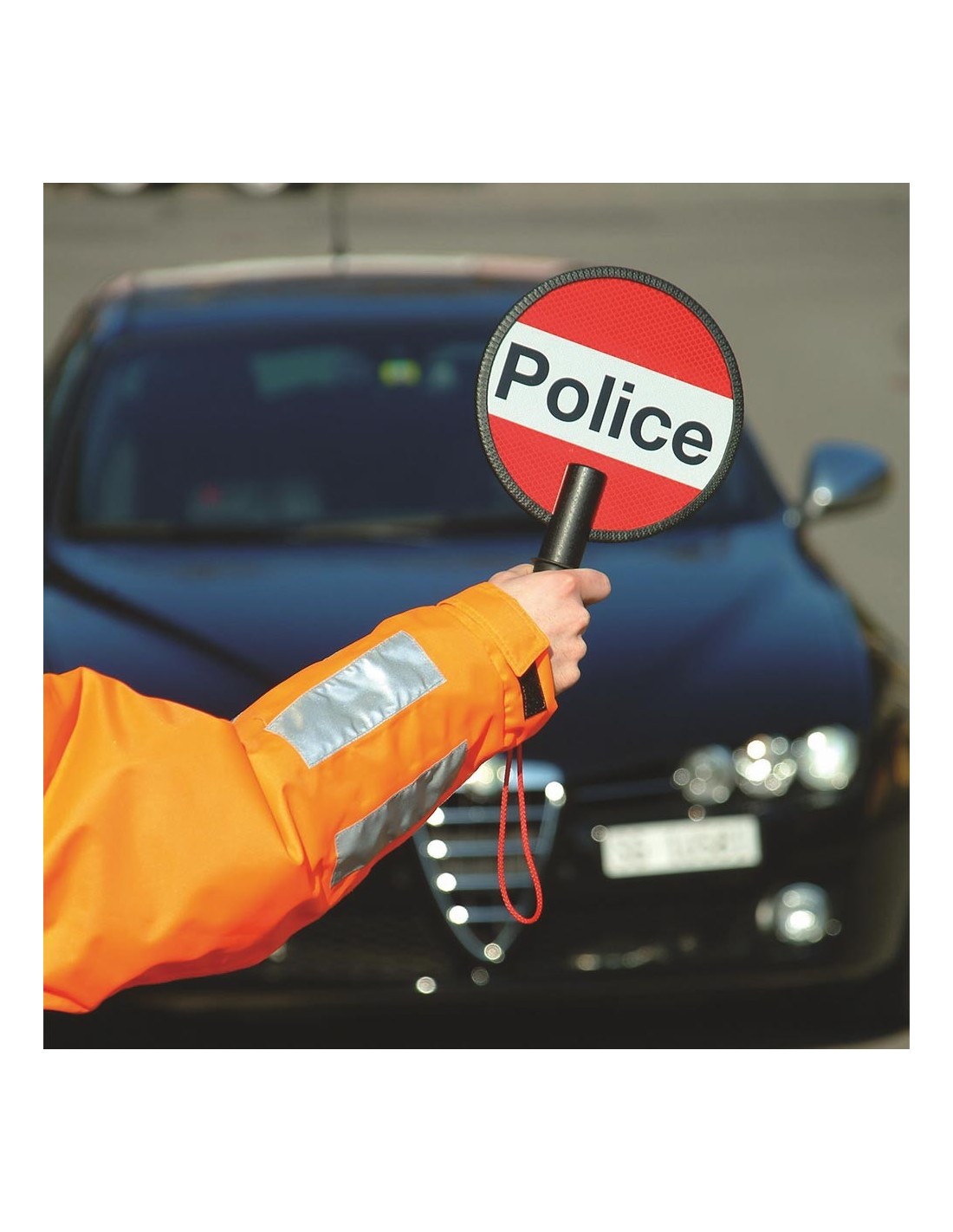 Die Anhaltekelle "Polizia" Triopan kann vielseitig eingesetzt werden, z.B. bei Verkehrskontrollen, Baustellen, Veranstaltungen oder im Sicherheitsbereich.