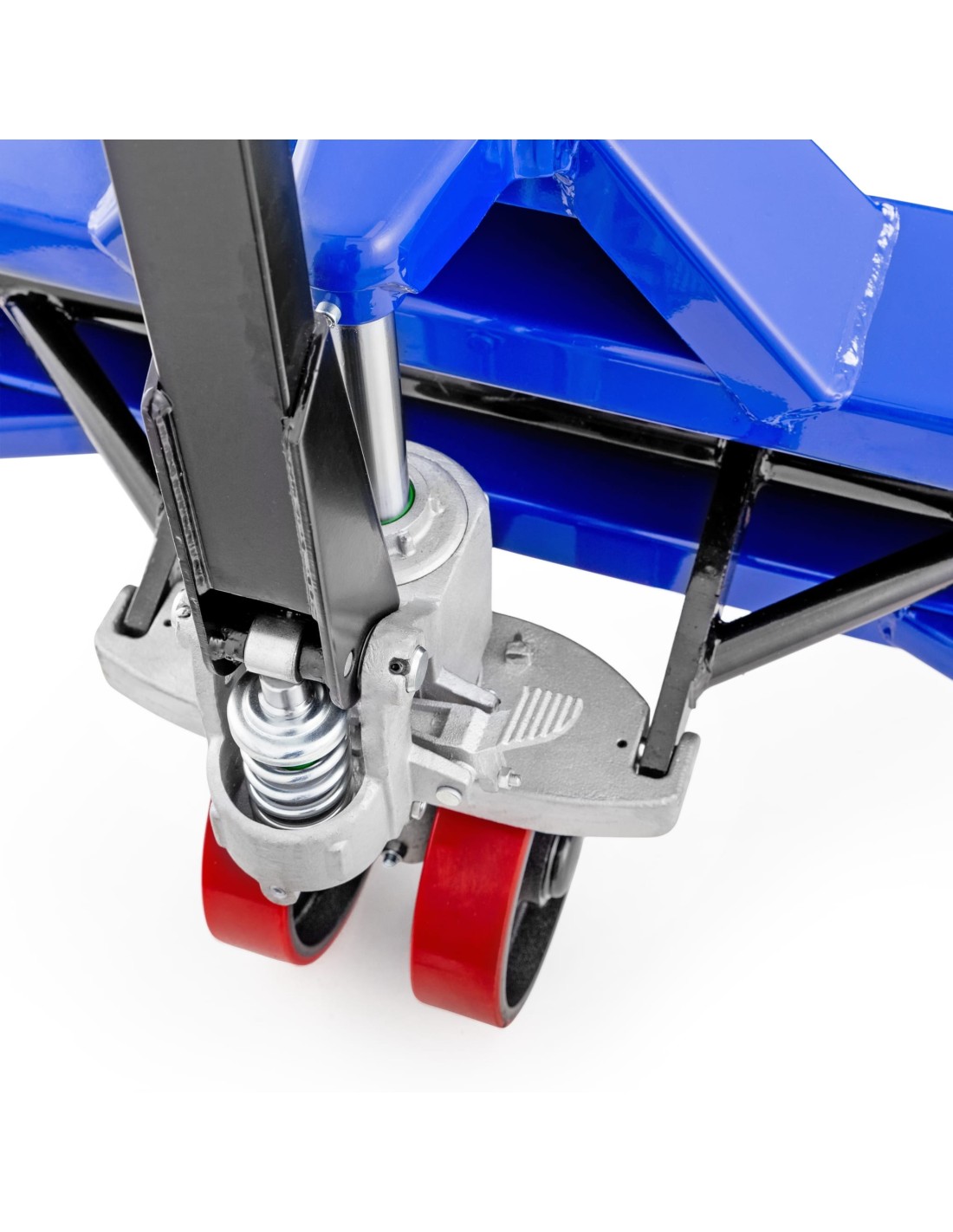 Der Prismenhubwagen ROLL von Pallit ist die ideale Lösung für den sicheren Transport von runden Gütern wie Papierrollen, Kabeltrommeln und Spulen. Mit seinen speziell geformten Gabelzinken und der robusten Stahlkonstruktion ist dieser Hubwagen perfekt für den täglichen industriellen Einsatz geeignet.