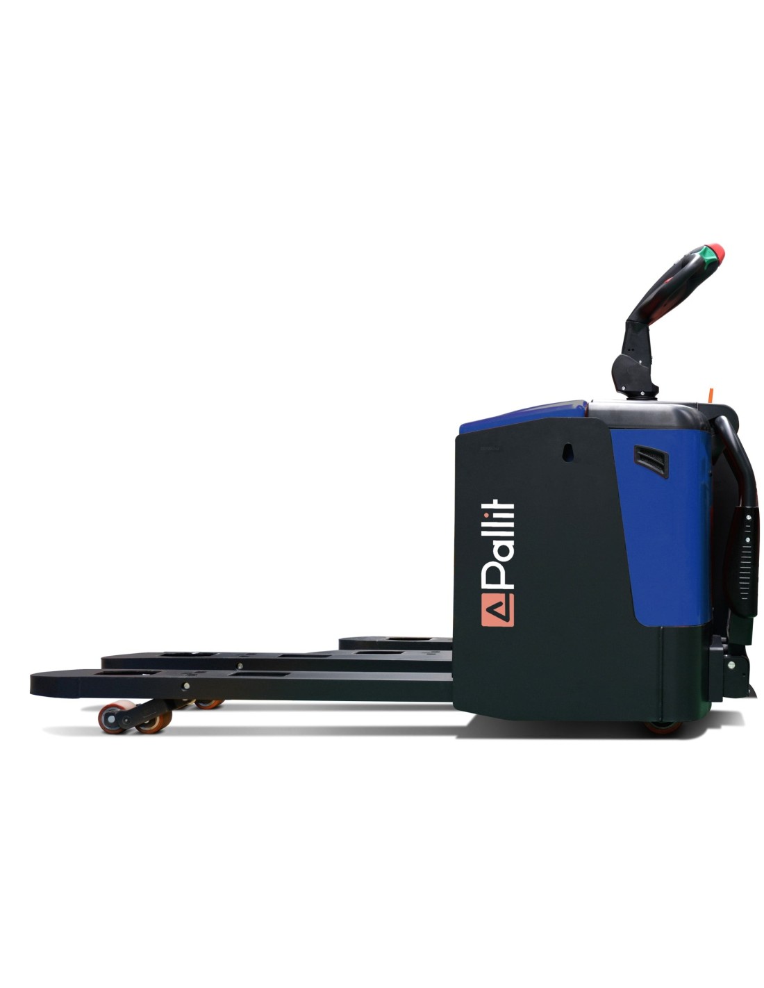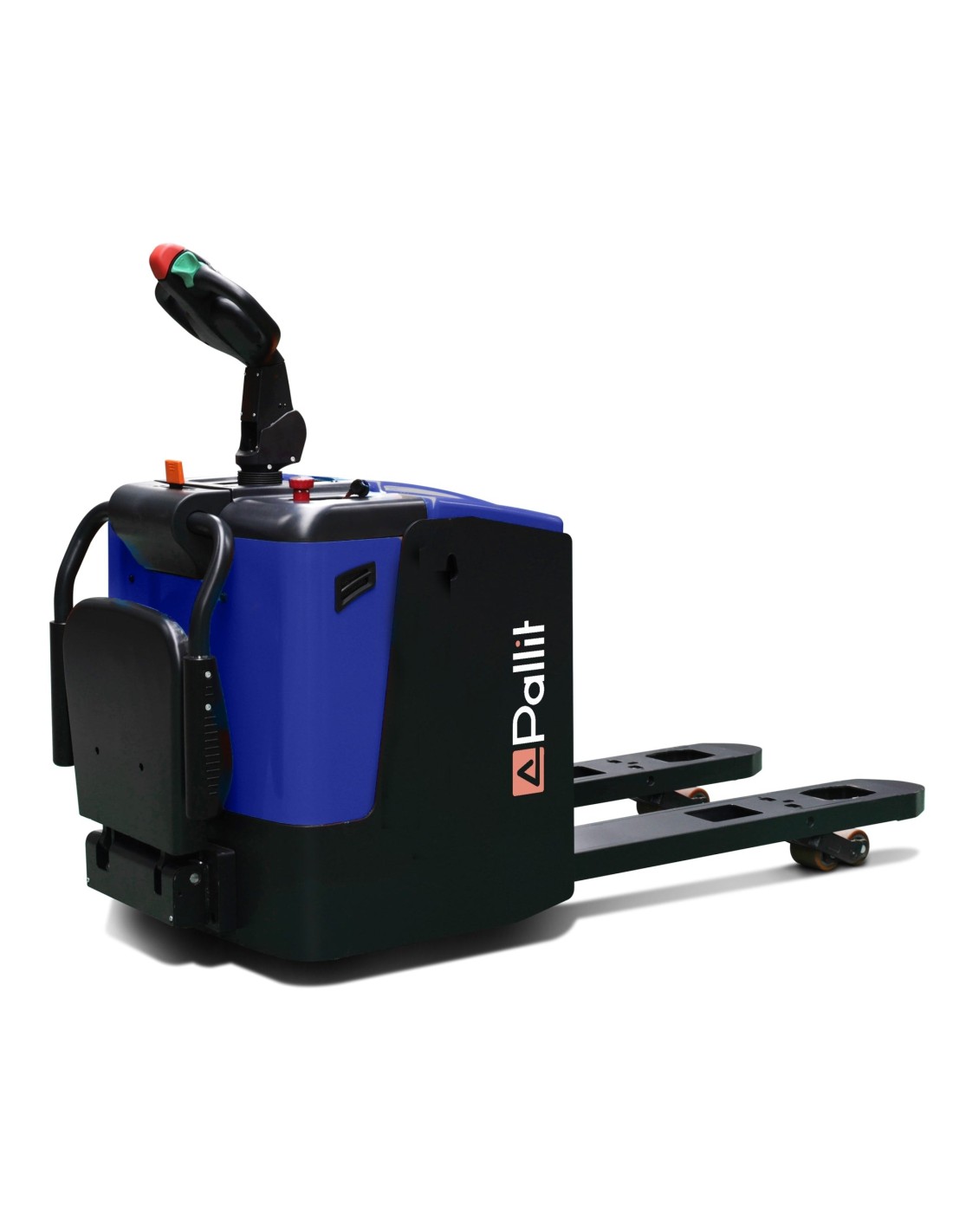 Unser elektrischer Mitfahrhubwagen RUN mit Standplattform ist ein leistungsstarkes Pro-Modell für den intensiven, täglichen Einsatz im Innenbereich.