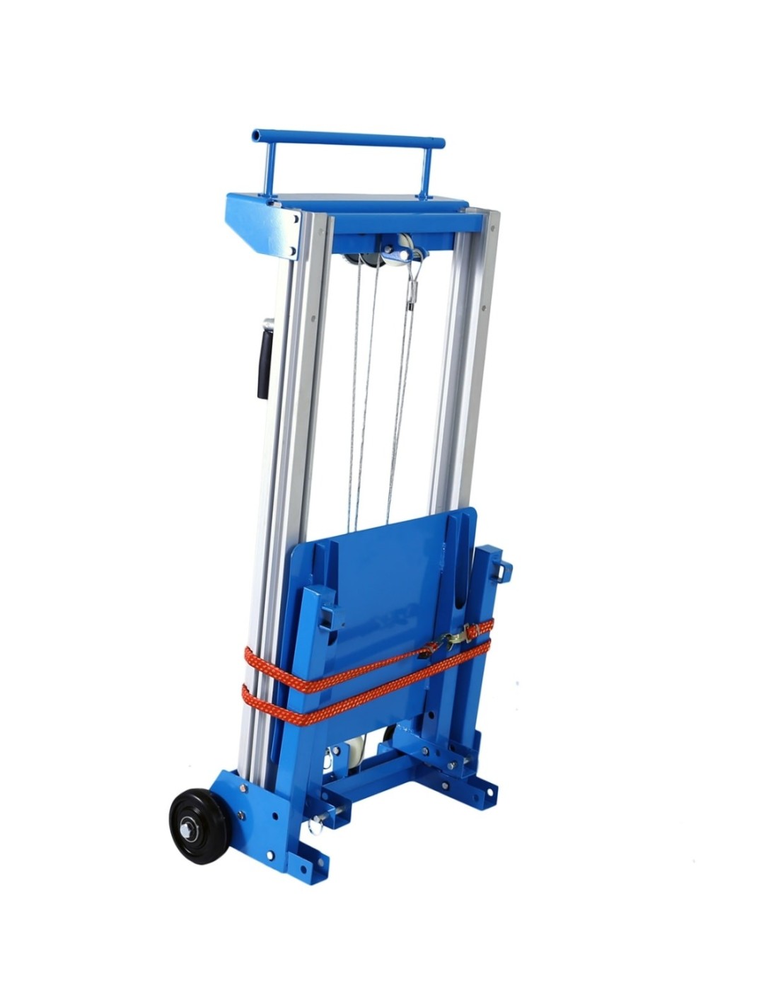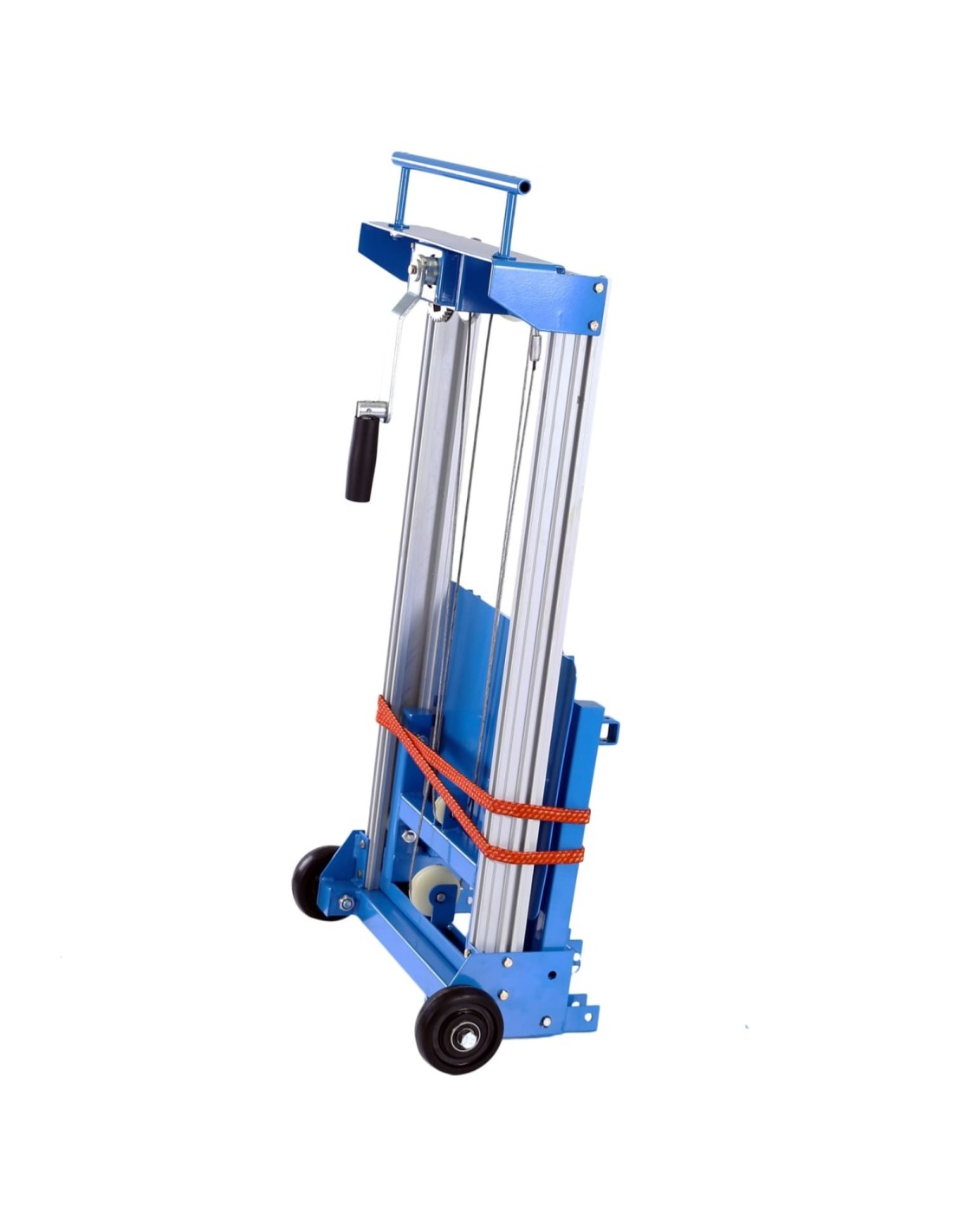 - Heben: Die Plattform wird manuell über die mechanische Handwinde bewegt, was eine präzise Steuerung ermöglicht.