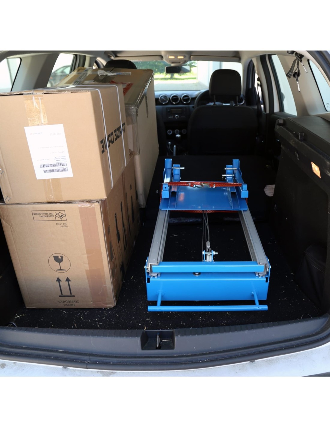 - Kompakt: Bei einer eingeklappten Grösse von 250x510x1.000 mm (LxBxH) lässt sich der Handwindenstapler platzsparend im Kofferraum verstauen.