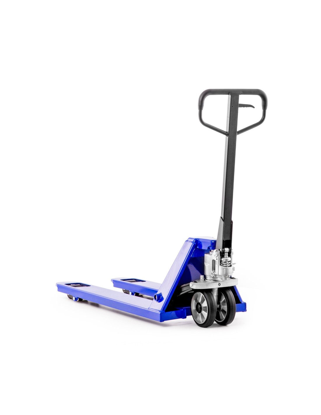 Unser Pro-Hubwagen SIX-R mit Gummirollen ist ein langlebiger Helfer für den Transport von Paletten und Gitterboxen bis zu 2.500 kg. Seine Gummibereifung und Tandem-Laufrollen gewährleisten einen stossdämpfenden, geräuscharmen Transport und sorgen für die nötige Stabilität während des Palettenhandlings.