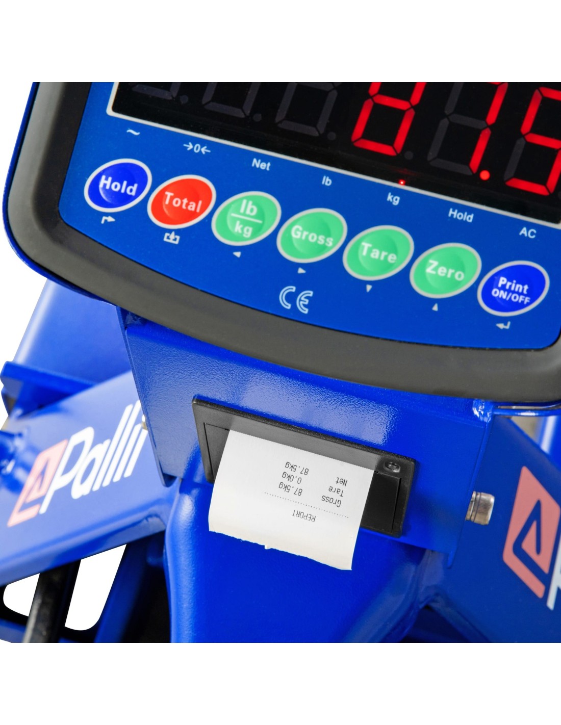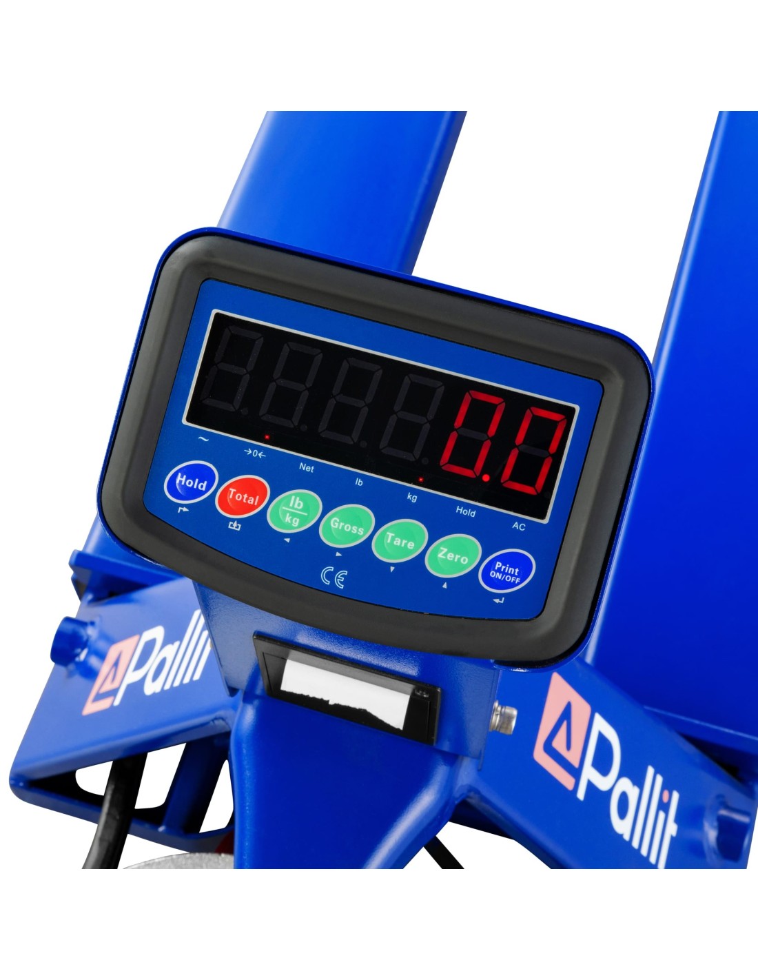 Der SCALE+P ist ein Hubwagen mit Waage und Drucker, ideal für tägliche Palettentransporte mit Wiegearbeiten. Die integrierte Waage ermöglicht eine genaue Gewichtskontrolle bei der Beladung von Lastfahrzeugen oder im Wareneingang. Mit einer Tragfähigkeit von 2.500 kg ist er ein zuverlässiger Partner im Lageralltag.