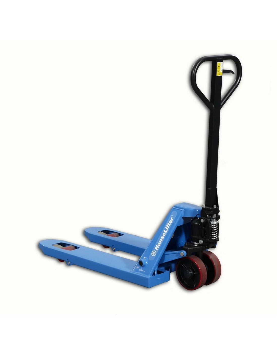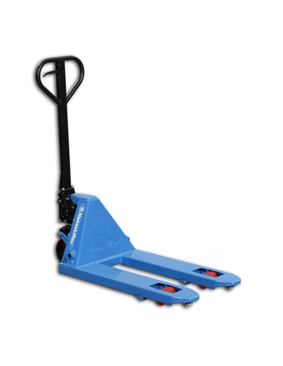 Der Hanselifter Hubwagen DB800 mit 800 mm langen Gabeln eignet sich ideal für den Palettentransport bei beengten Raumverhältnissen - auch dank des minimalen Wenderadius von 1160 mm. Das geringe Eigengewicht von 63 kg und die hohe Kapazität von 2000 kg machen ihn zum perfekten Begleiter im Lkw.