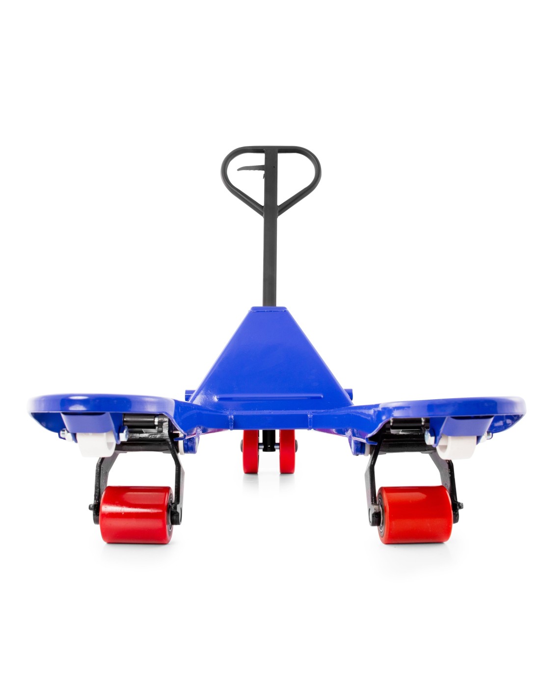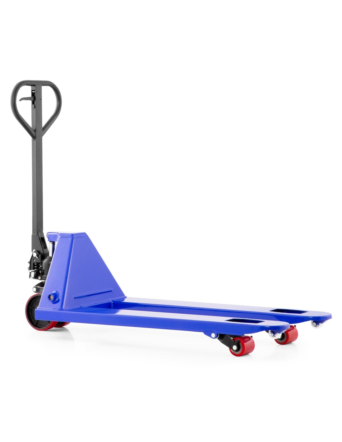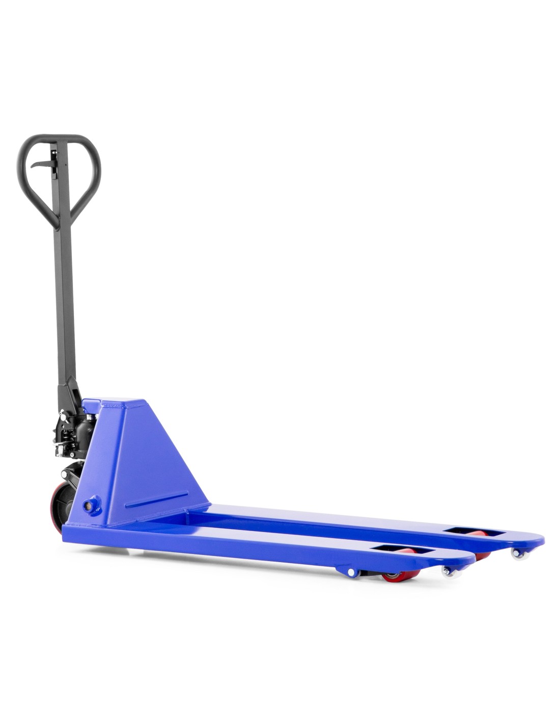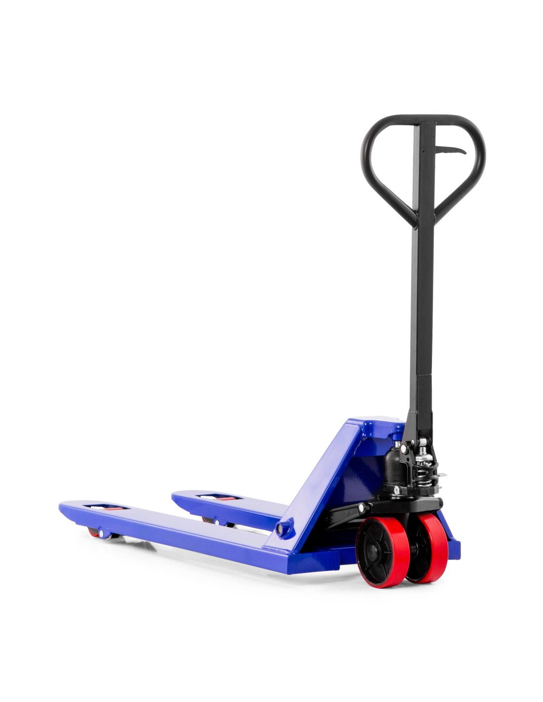 Unser FIVE-S Handhubwagen mit Single-Bereifung ist preisgünstig und zuverlässig. Dank seiner stabilen und verwindungssteifen Konstruktion können Europaletten bis zu 2.500 kg problemlos verfahren werden. Die Handhabung ist angenehm und einfach.