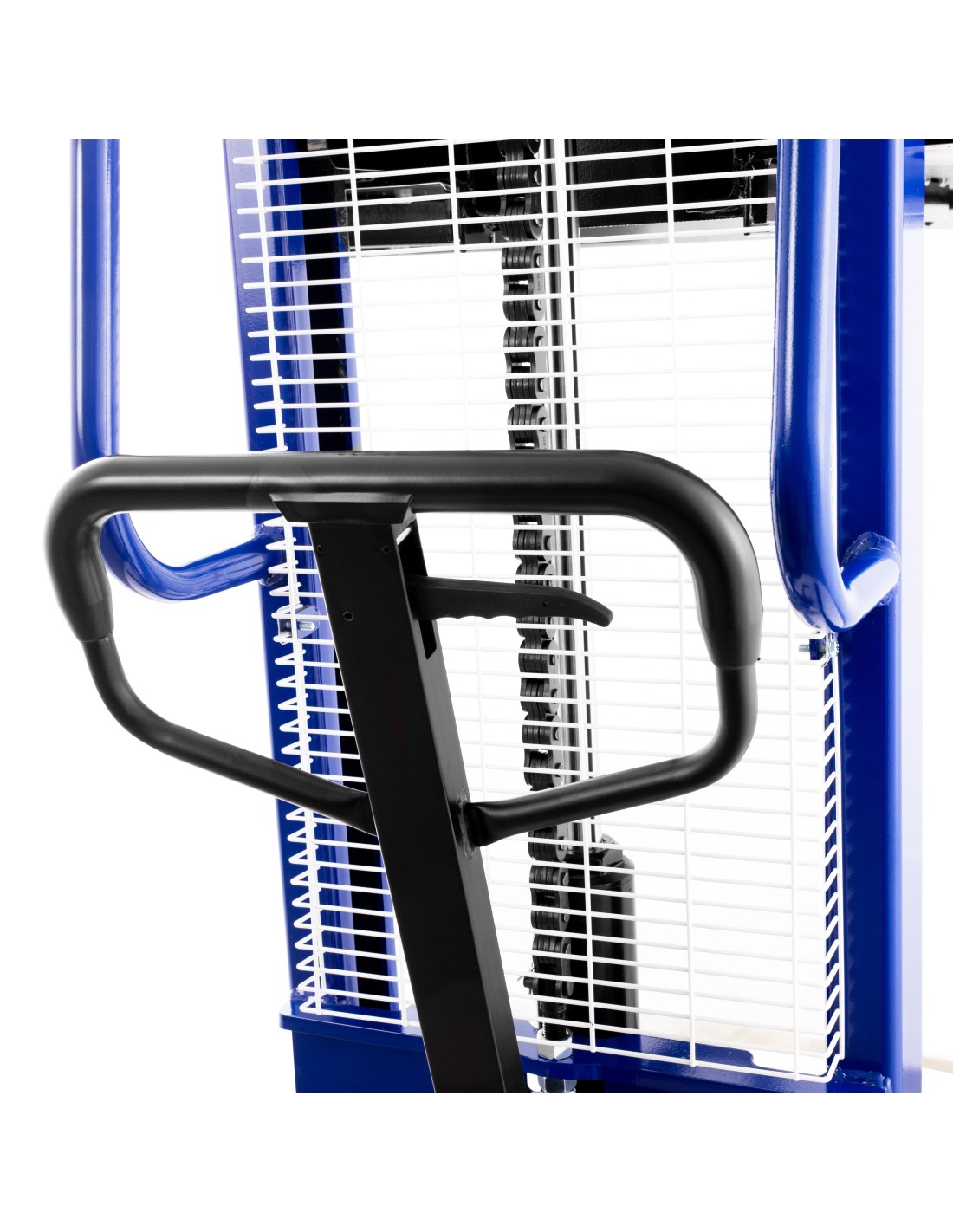 - Freihub: Paletten bis auf eine Höhe von 415 mm anheben, ohne dass sich die Bauhöhe des Hochhubwagens verändert