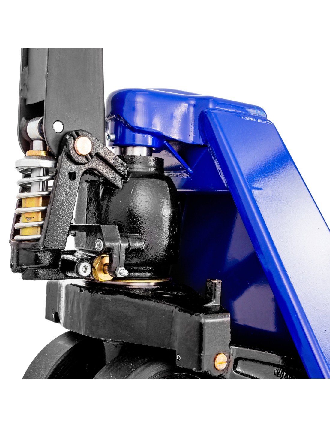 - Bedienung: Paletten lassen sich in nur 2-3 Hubschlägen anheben und stufenlos, dosiert absenken dank Bowdenzug.