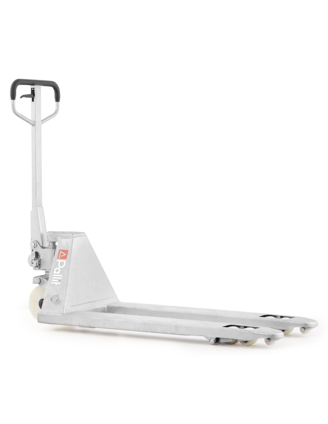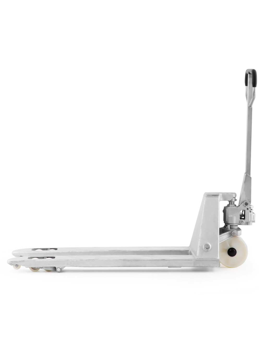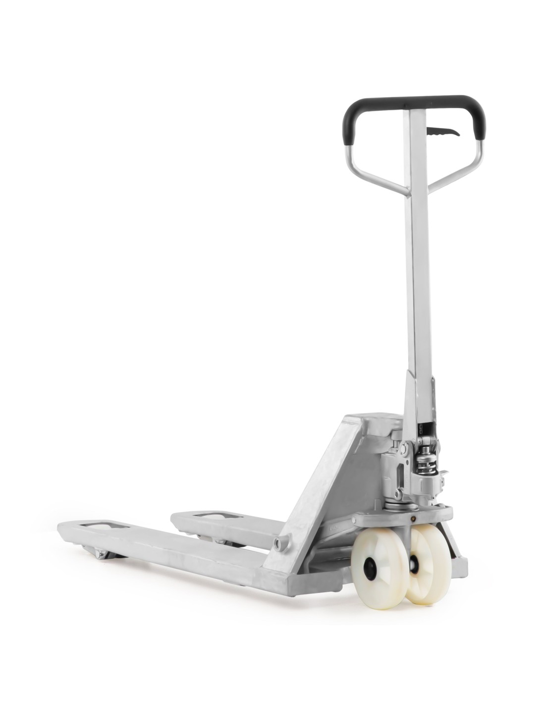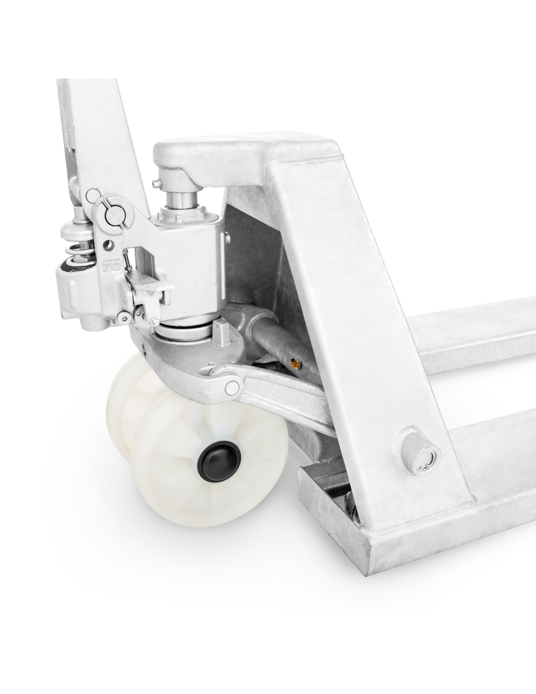 Der GALVAN Hubwagen ist verzinkt und daher ideal für den Transport von Paletten in Reinräumen und Kühlhäusern. Er ist korrosionsbeständig, leicht zu reinigen, robust und belastbar, was ihn zum idealen Modell für den täglichen Einsatz macht.