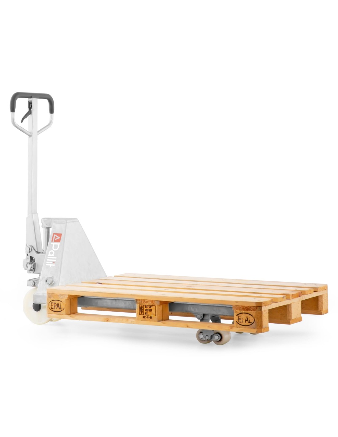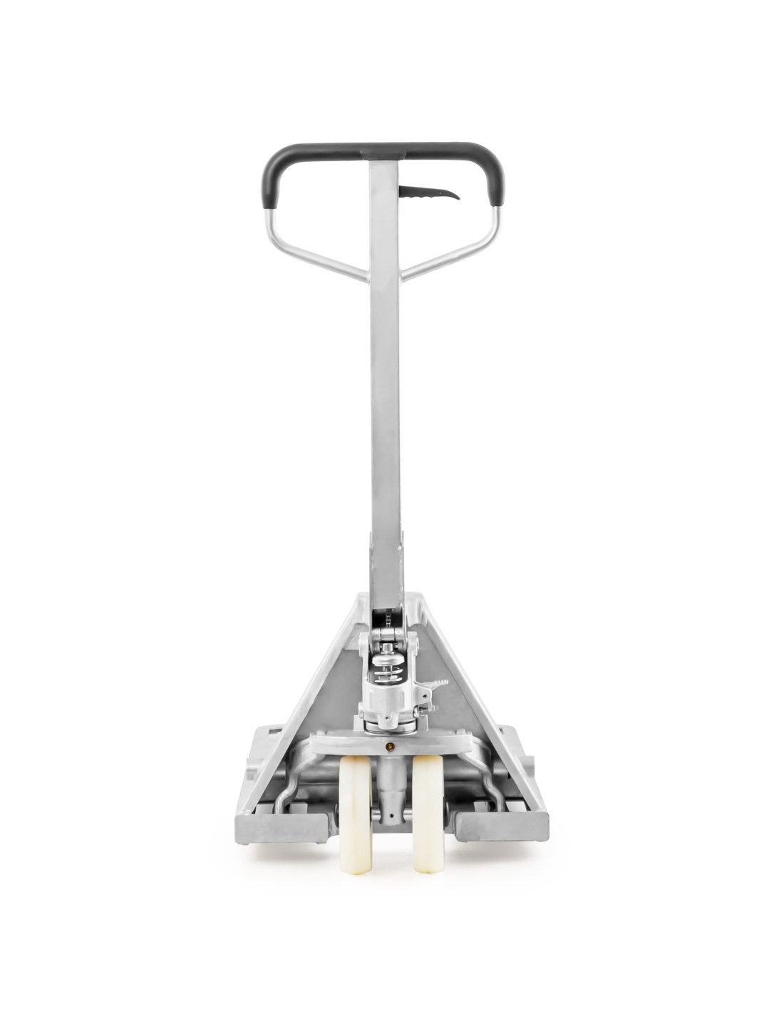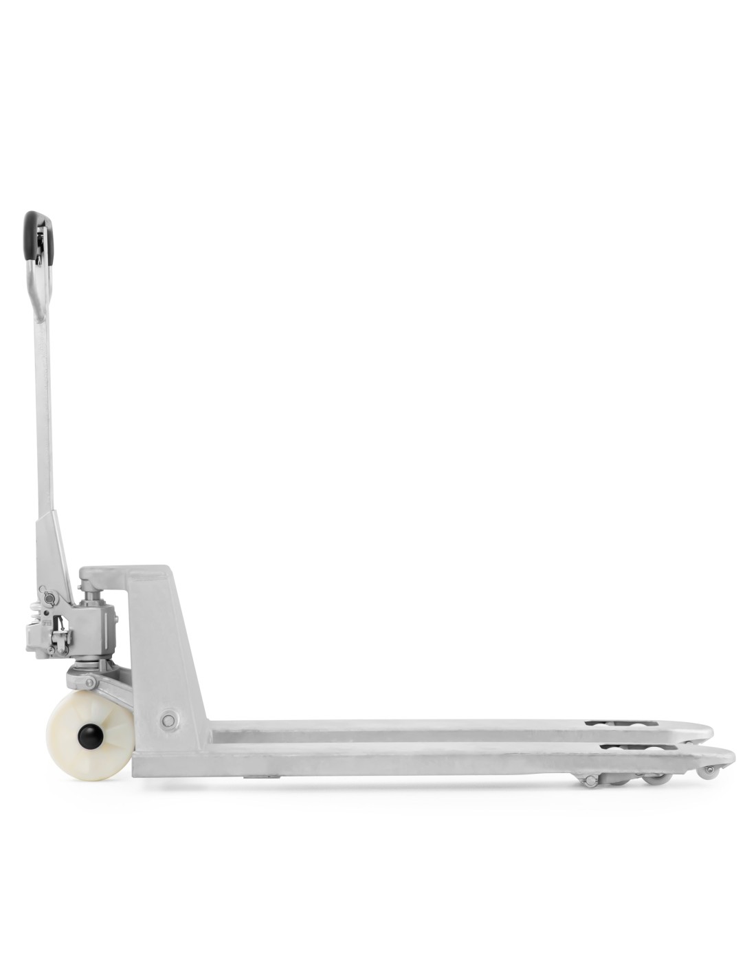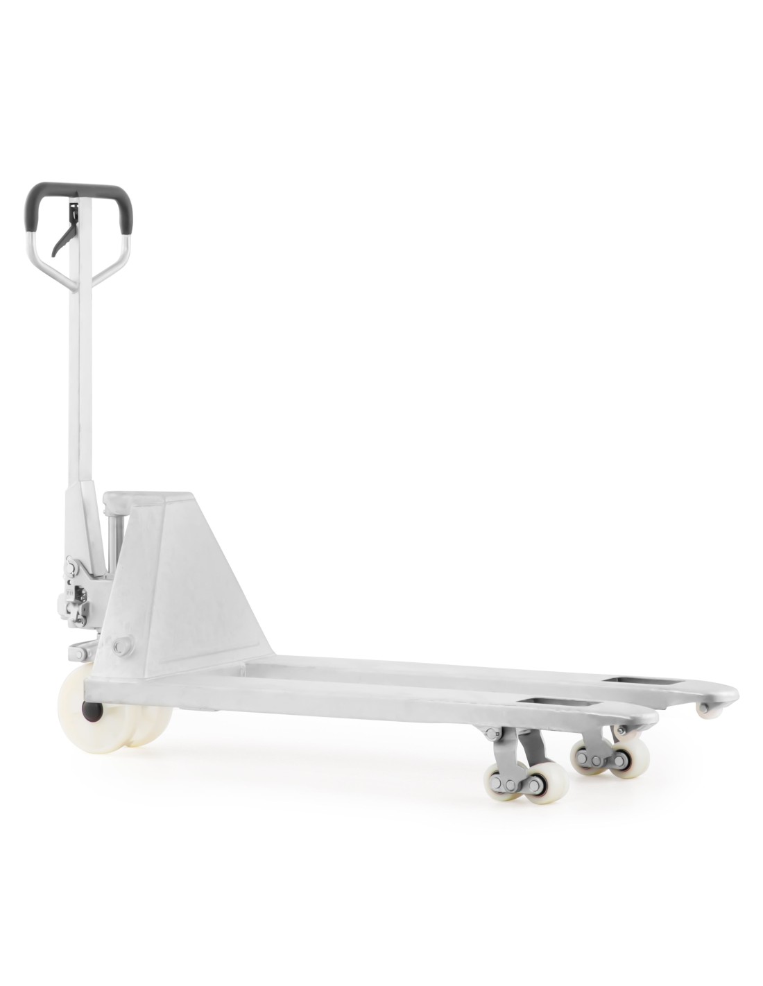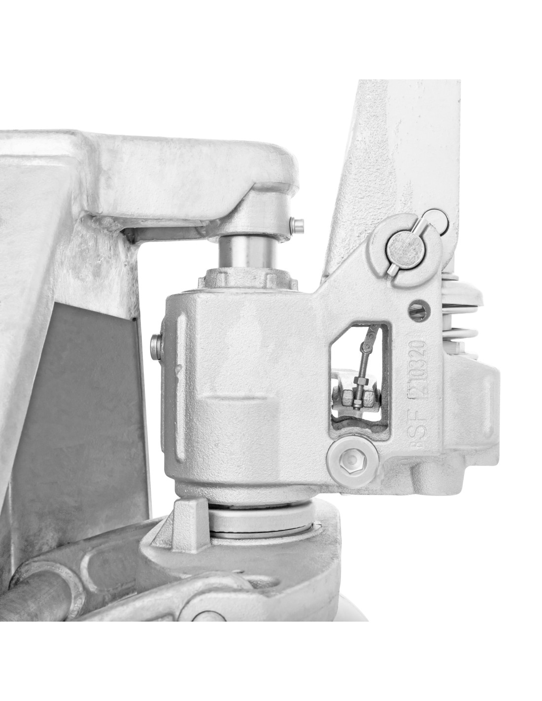 Der GALVAN Hubwagen ist verzinkt und daher ideal für den Transport von Paletten in Reinräumen und Kühlhäusern. Er ist korrosionsbeständig, leicht zu reinigen, robust und belastbar, was ihn zum idealen Modell für den täglichen Einsatz macht.