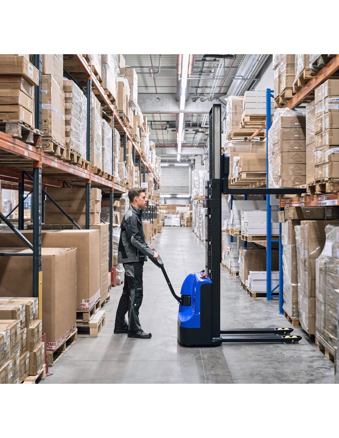 Der Elektro-Hochhubwagen BUDGET-M eignet sich perfekt für leichte Einsätze von bis zu 4 Stunden pro Ladung. Mit einer Hubhöhe von 3 Metern und einer Tragfähigkeit von bis zu 1.200 kg ist er ideal zum Stapeln, Lagern, Laden und Transportieren von Europaletten.