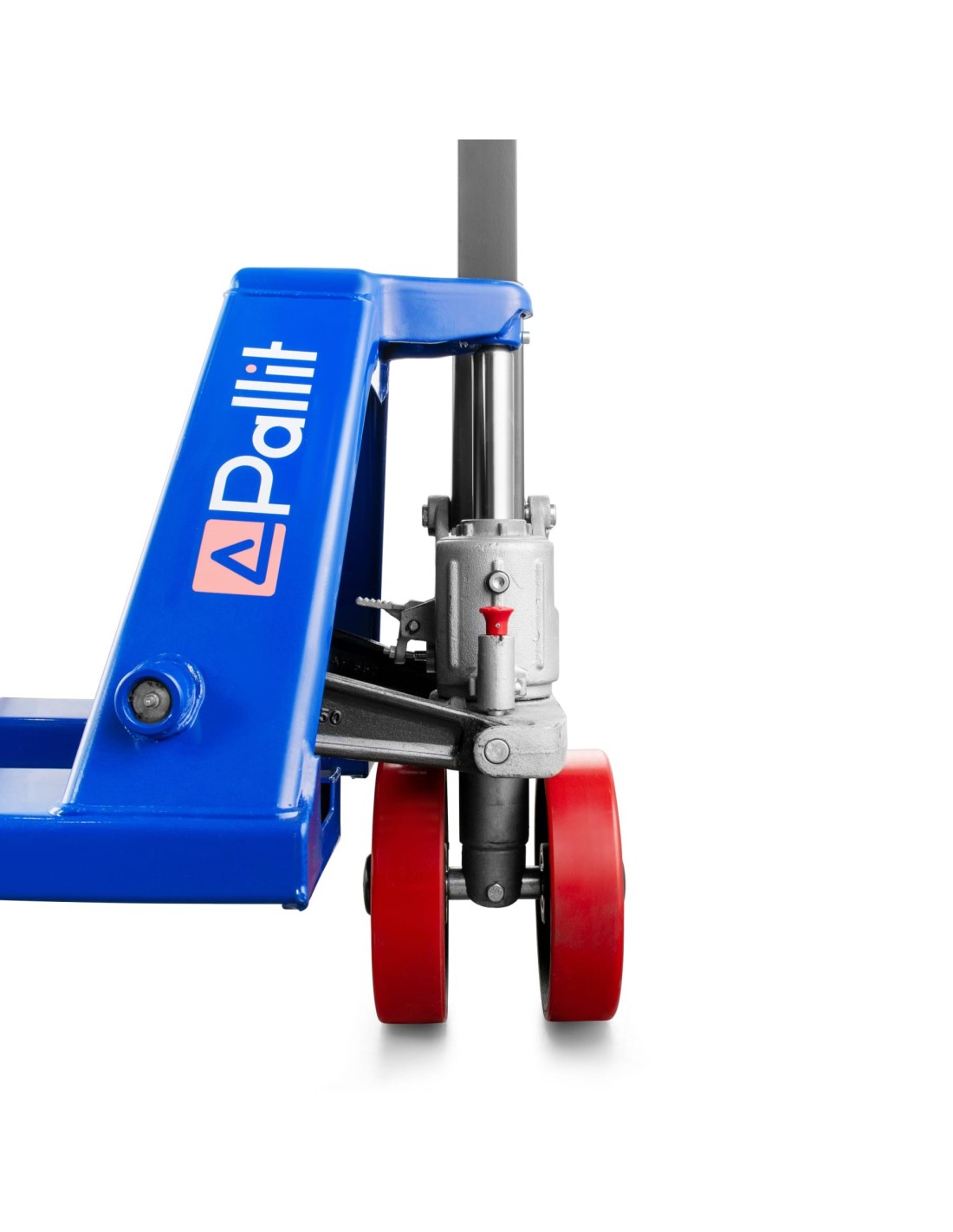 Der 4 Wege Hubwagen 4WAY von Pallit ist die ideale Lösung für den Palettentransport in beengten Räumlichkeiten. Dank seiner zusätzlichen Rollen kann er Paletten auch seitlich bewegen, was besonders bei überbreiten oder überlangen Gütern von Vorteil ist. Dieser Gabelhubwagen zeichnet sich durch seine Robustheit, hohe Belastbarkeit und Langlebigkeit aus.