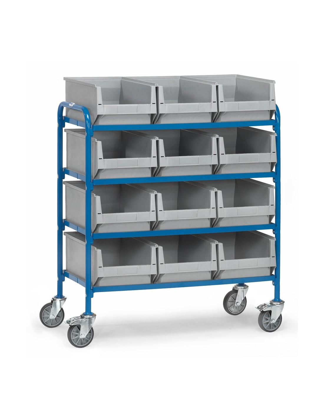 Fetra Beistellwagen mit 3x4 Kunststoff-Sichtlagerkästen, Ladefläche 940 x 470 mm