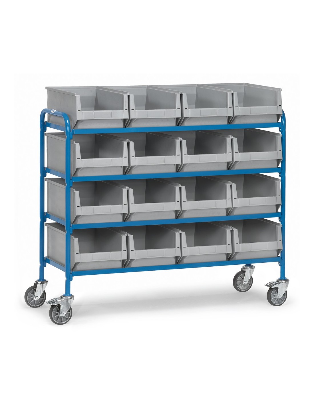 Fetra Beistellwagen mit 4x4 Kunststoff-Sichtlagerkästen, Ladefläche 1250 x 470 mm