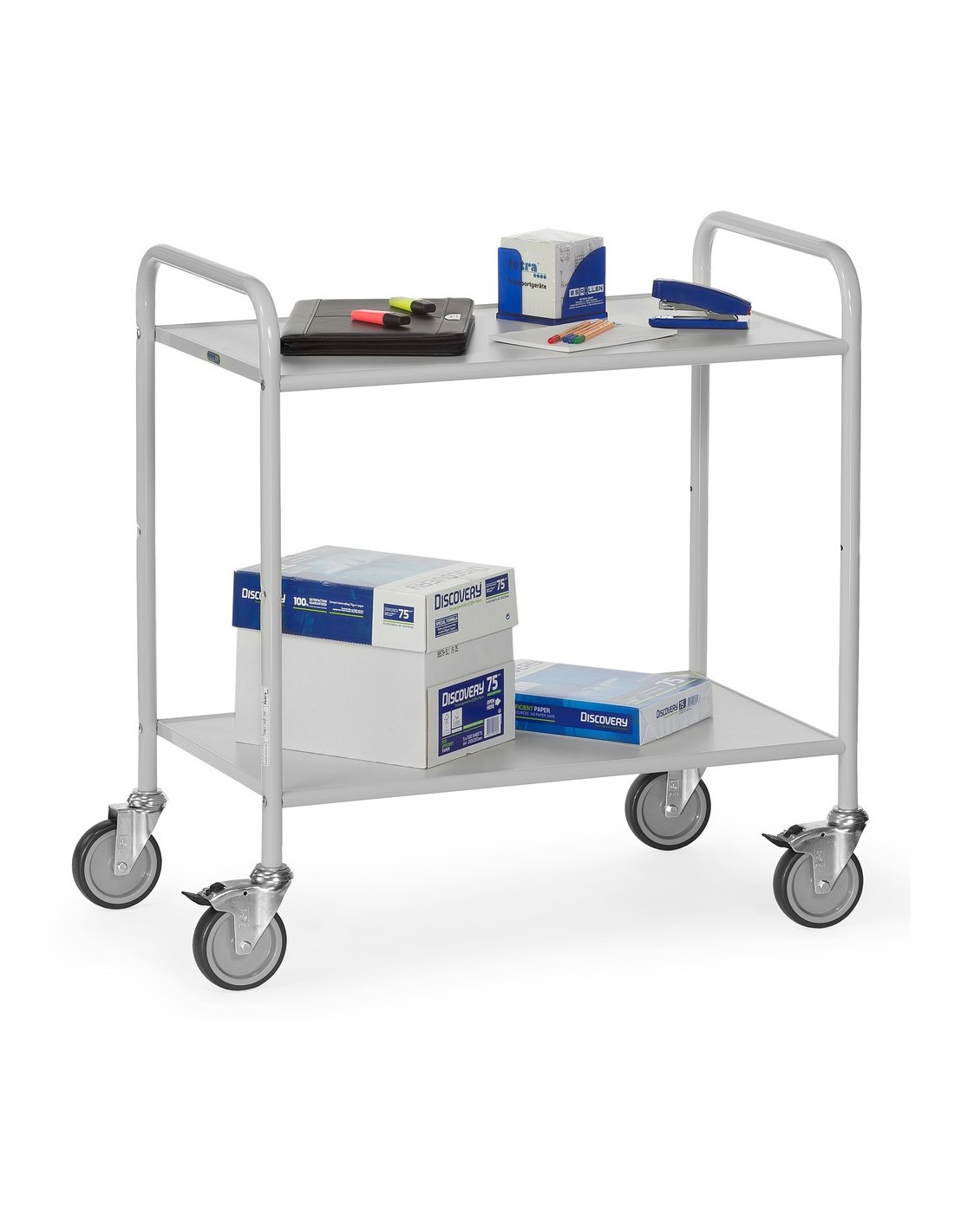Der Bürowagen eignet sich perfekt für den täglichen Einsatz in Bürogebäuden, Archiven und Verwaltungseinrichtungen. Er ermöglicht einen effizienten Transport von Akten, Unterlagen und Büromaterialien.