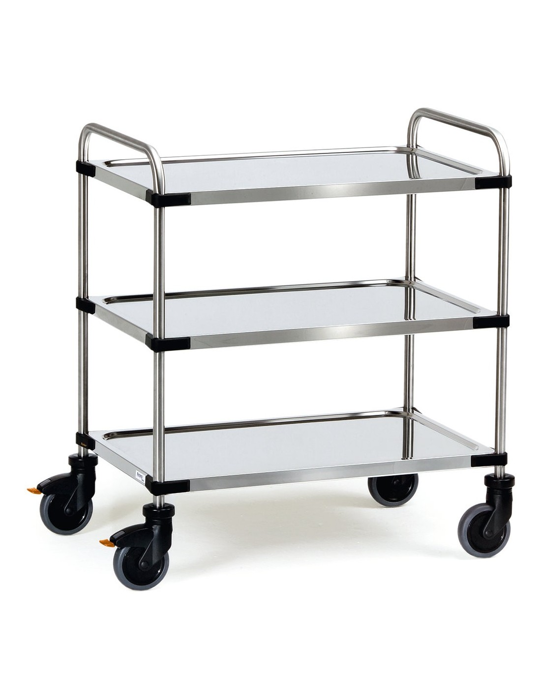 Fetra Edelstahlwagen mit 3 Böden, Ladefläche 800 x 500 mm