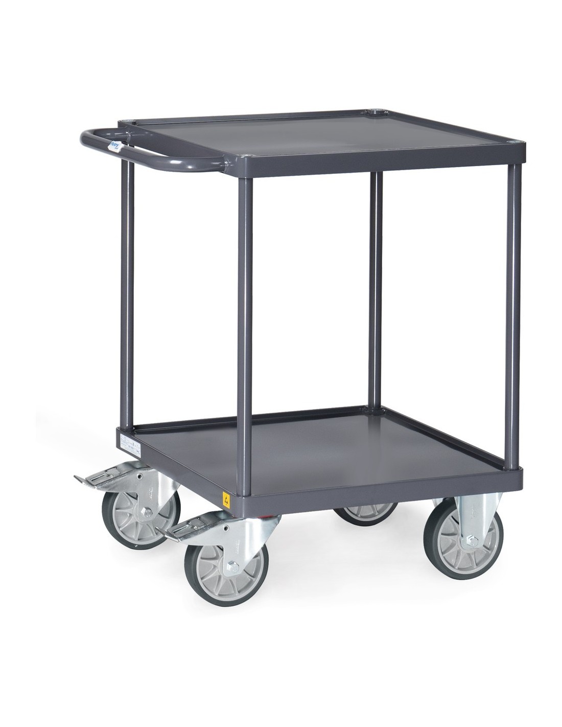 Fetra ESD-Tischwagen quadtratrisch mit 2 Böden, Stahlblech-Wannen, 600 x 600 mm