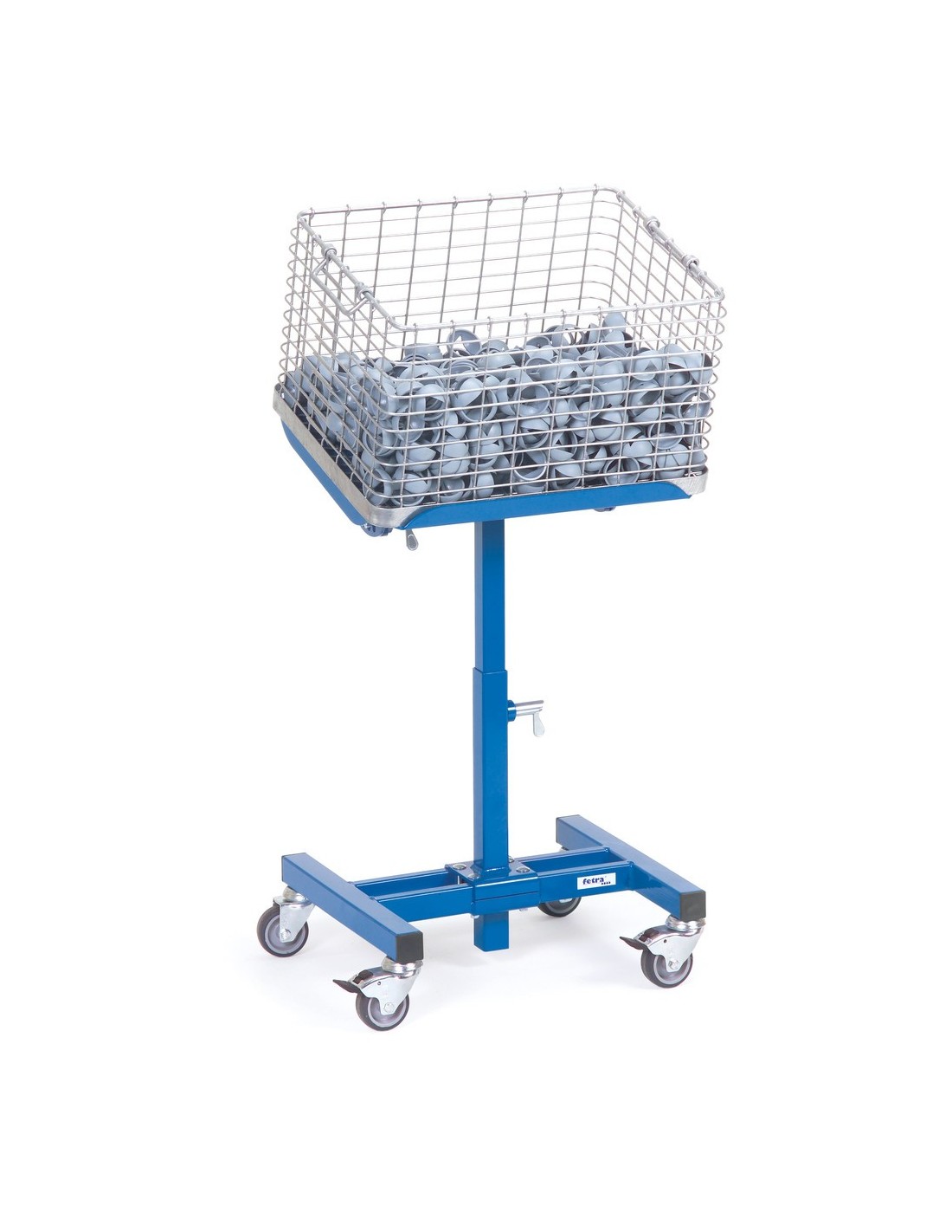 Dieser Materialständer von Fetra ist die ideale Lösung für die Lagerung von Kunststoffkästen, Stahlblechkästen, Drahtkörben und mehr. Die Profilstahl- / Rohrkonstruktion mit Stahlblechplattform ist höhenverstellbar von 500 – 775 mm im Raster von 25 mm. Die Plattform kann sowohl gerade als auch neigbar um 15° und 30° eingestellt werden.