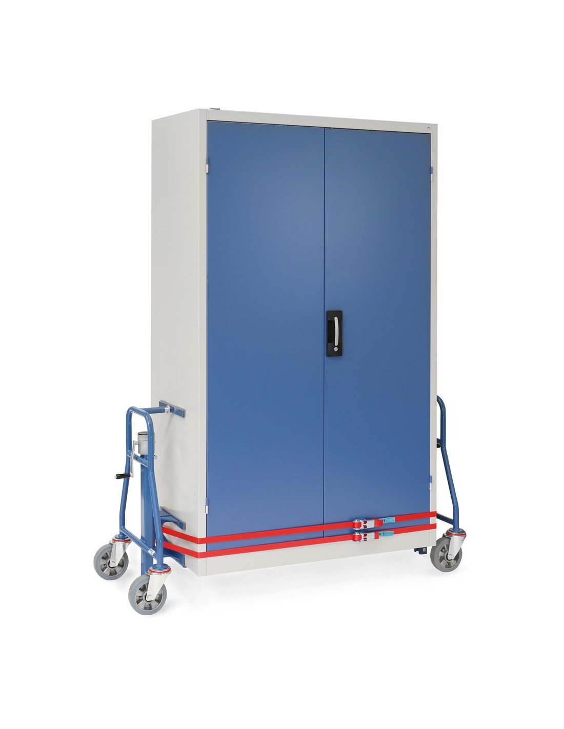 Dieser Möbelhubroller mit Handspindelwinde eignet sich perfekt für den sicheren 1-Mann-Transport von Schränken. Hergestellt aus massiven Stahlrohren, bietet er eine hohe Belastbarkeit und die Flexibilität des Stahls. Die pulverbeschichtete Konstruktion in Blau RAL 5007 ist robust und langlebig.