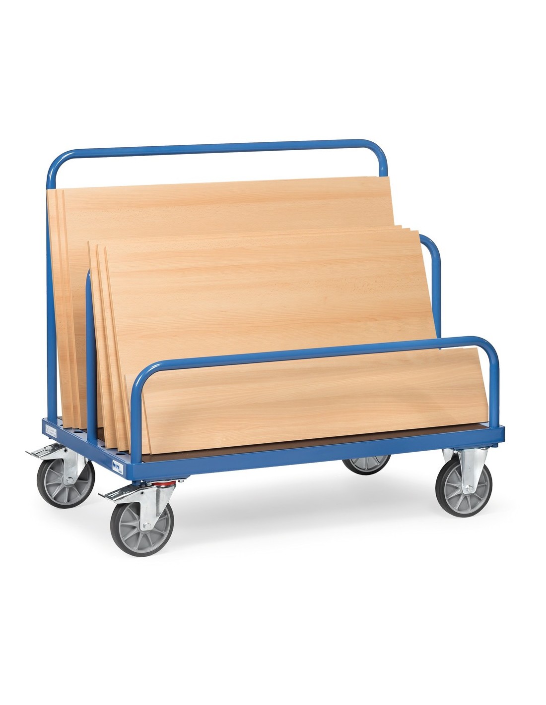 Einleitung: Mit dem Fetra Plattenwagen für Einsteckbügel können Sie Holz-, Metall- oder Glasplatten sicher und bequem transportieren.