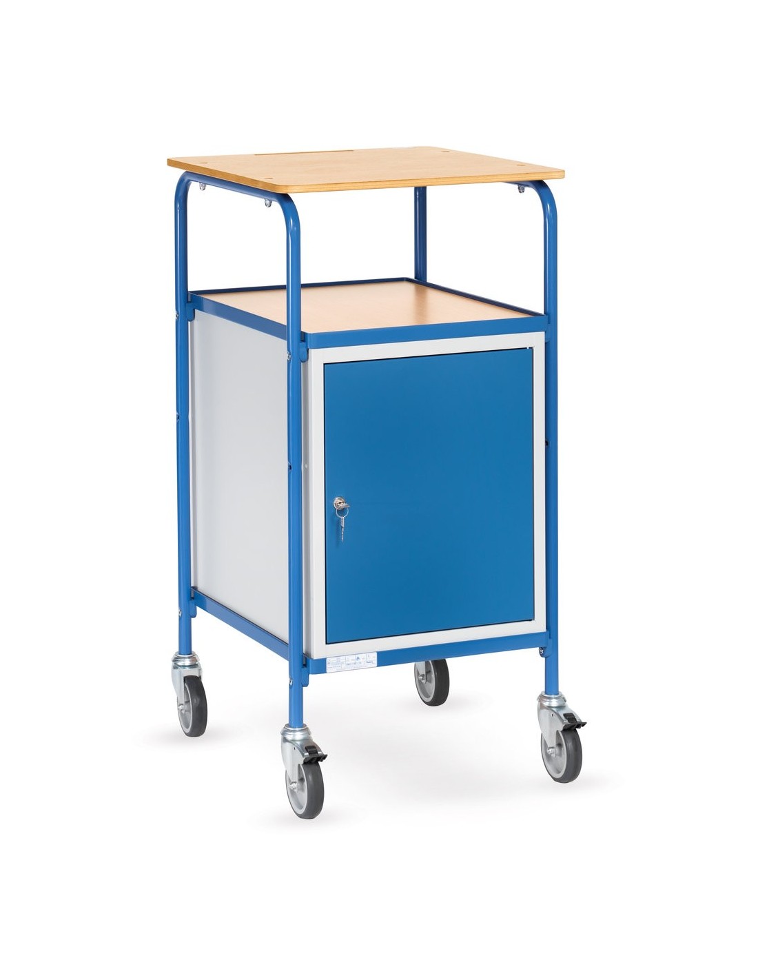 Dieses Rollpult von Fetra bietet eine praktische Kombination aus Schrank und Schreibfläche. Hergestellt aus geschweisstem Stahlrohr und Profilstahl, ist es stabil und langlebig. Die pulverbeschichtete Oberfläche in blau RAL 5007 verleiht dem Rollpult ein ansprechendes Aussehen.
