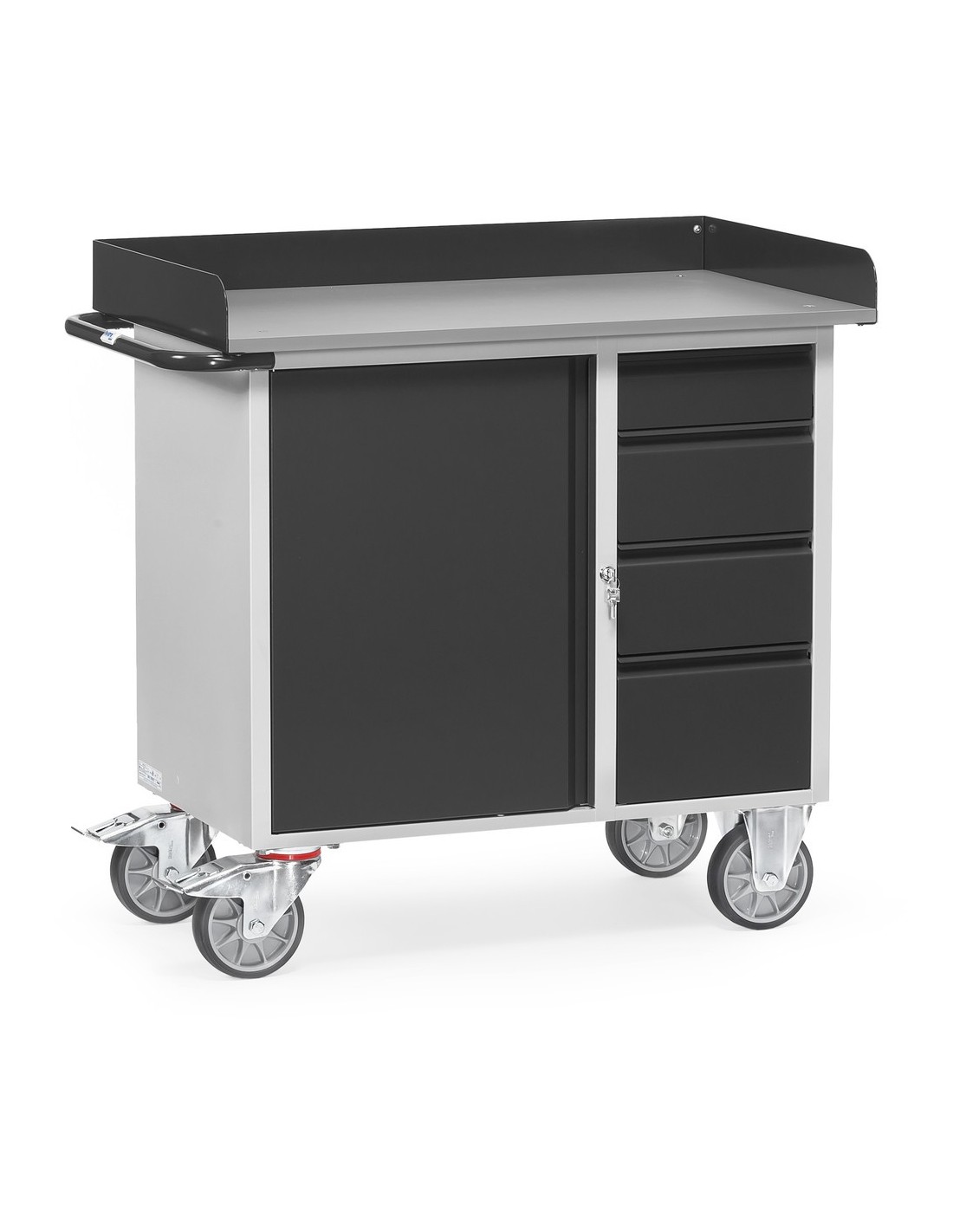 Fetra Werkstattwagen mit 1 Schrank + 4 Schubladen, Arbeitsplatte mit Abrollrand, Grey Edition