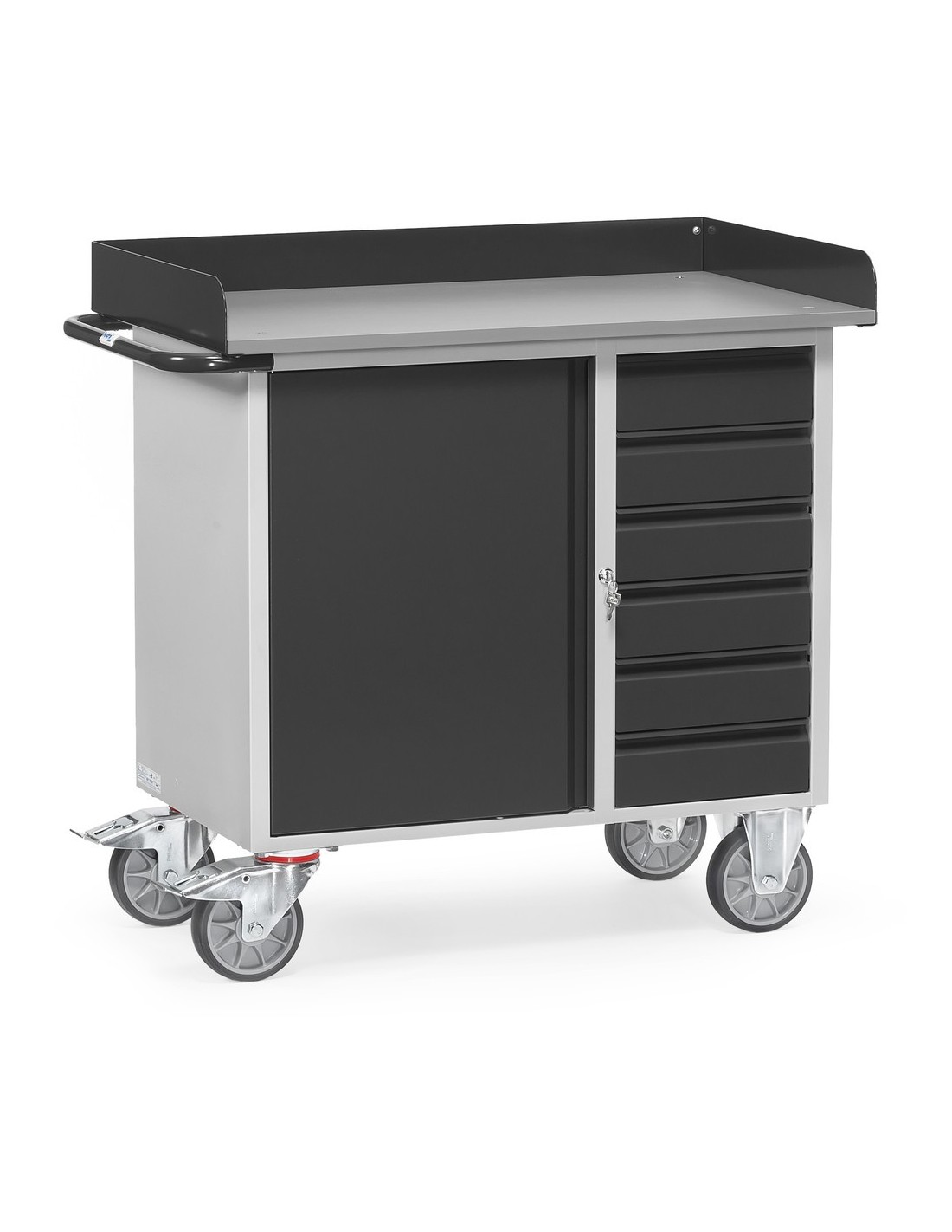 Fetra Werkstattwagen mit 1 Schrank + 6 Schubladen, Arbeitsplatte mit Abrollrand, Grey Edition