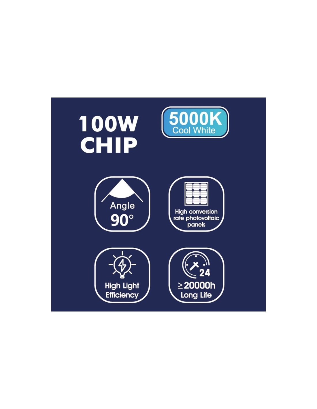 Entdecken Sie den Aussenstrahler Solar LED 100W, die perfekte Lösung, um Ihre Aussenbereiche effizient und autonom zu beleuchten! Dieser innovative Projektor ist aus hochwertigen Materialien wie Aluminium und PC gefertigt und gewährleistet seine Langlebigkeit und Widerstandsfähigkeit gegenüber widrigen Wetterbedingungen.