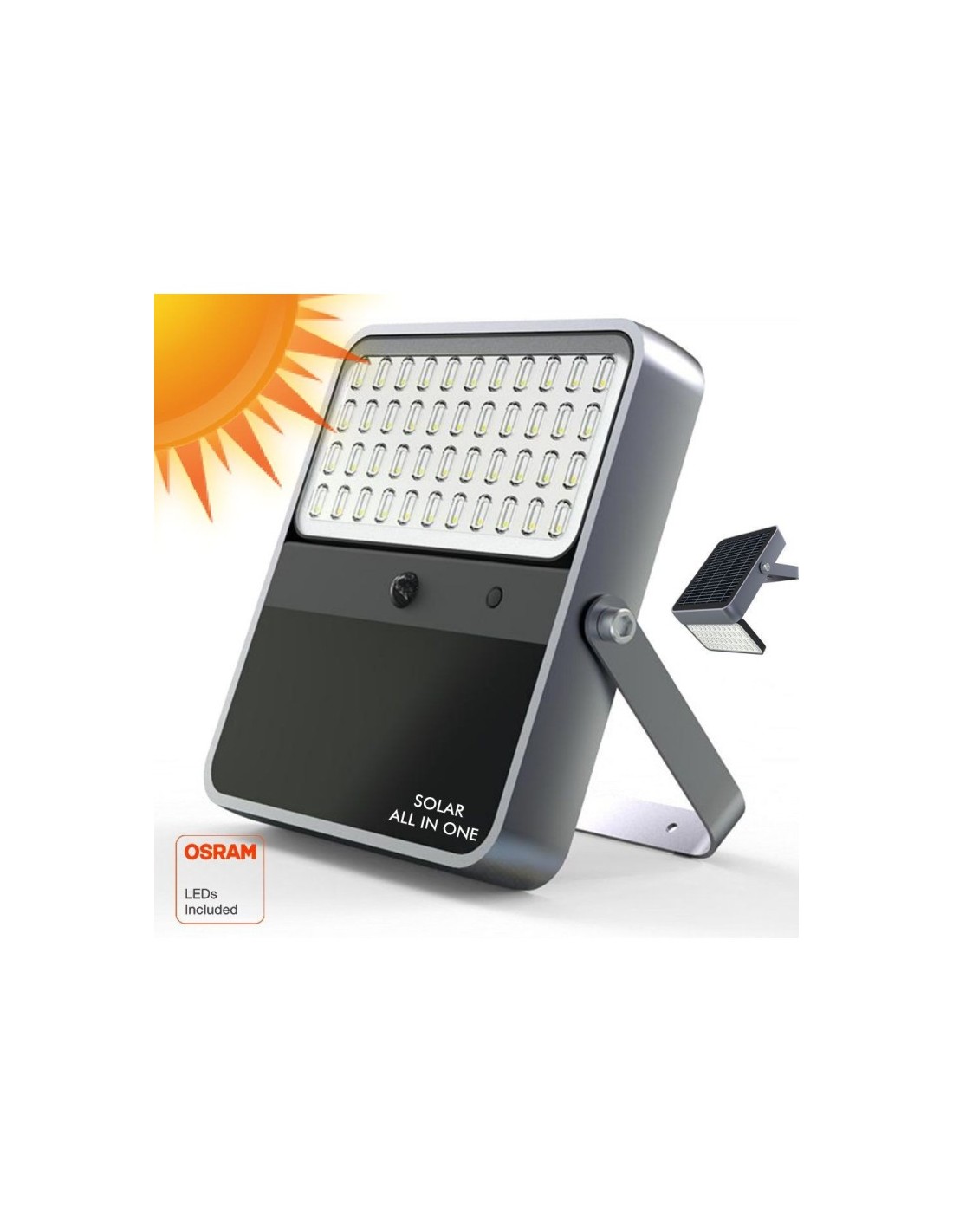 Solar-LED-Strahler ALL IN ONE - 100W CHIP OSRAM - mit kühlem weißen Licht 5700k, ohne die Notwendigkeit für elektrischen Strom, völlig autonom mit polykristallinen Solarpanel.