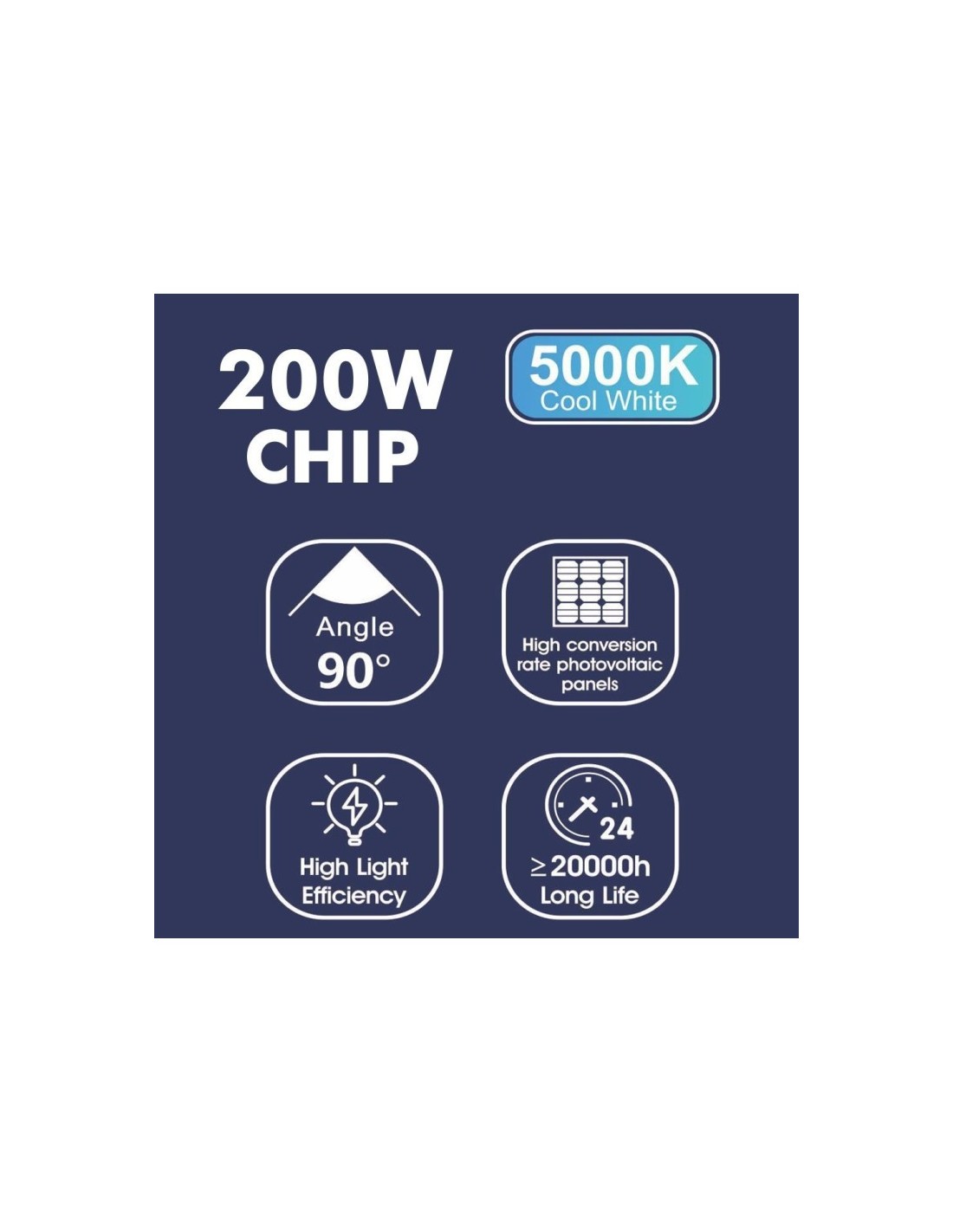 Entdecken Sie den Aussenstrahler Solar LED 200W, die perfekte Lösung, um Ihre Aussenbereiche effizient und autonom zu beleuchten! Dieser innovative Projektor ist aus hochwertigen Materialien wie Aluminium und PC gefertigt und gewährleistet seine Langlebigkeit und Widerstandsfähigkeit gegenüber widrigen Wetterbedingungen.