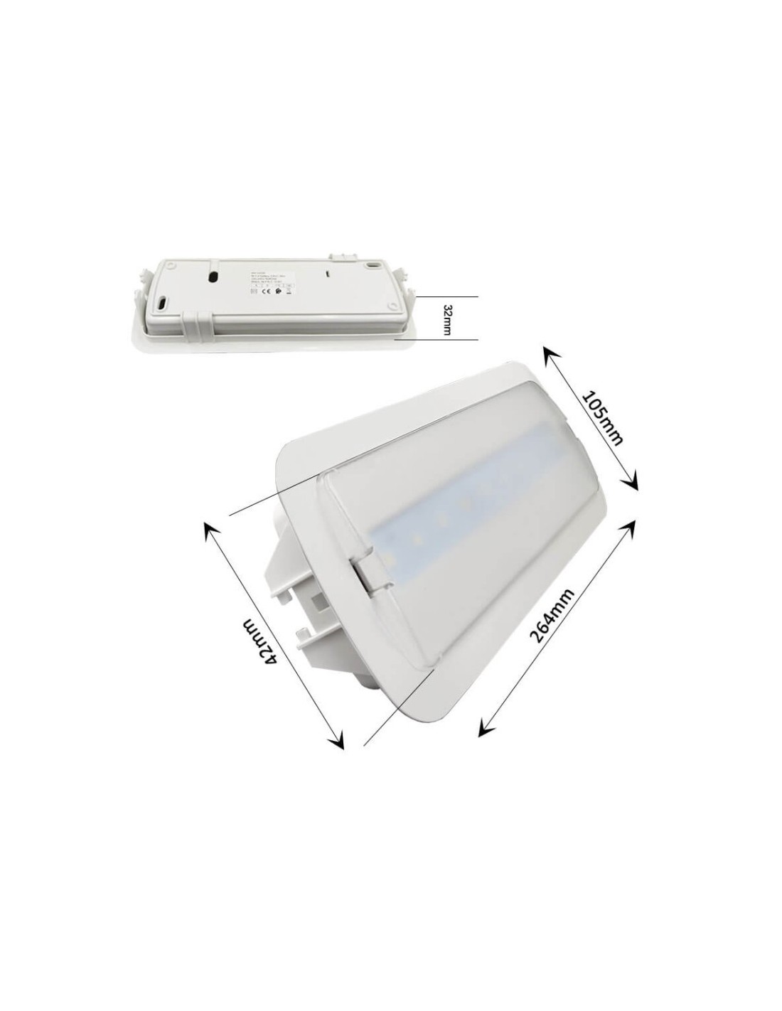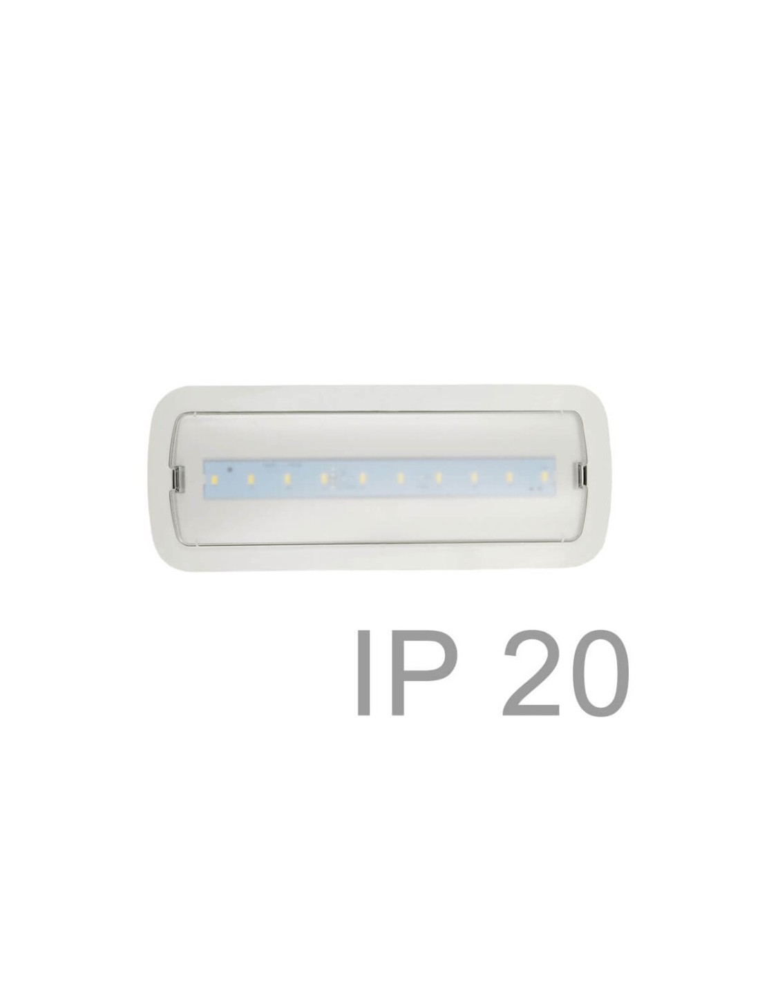 - IP20-Schutzsystem: Dieses Notfalllicht verfügt über eine IP20-Schutzklasse, was bedeutet, dass es vor dem Eindringen fester Körper grösser als 12 mm geschützt ist, wie z.B. Finger, und nicht anfällig für Wasser ist.