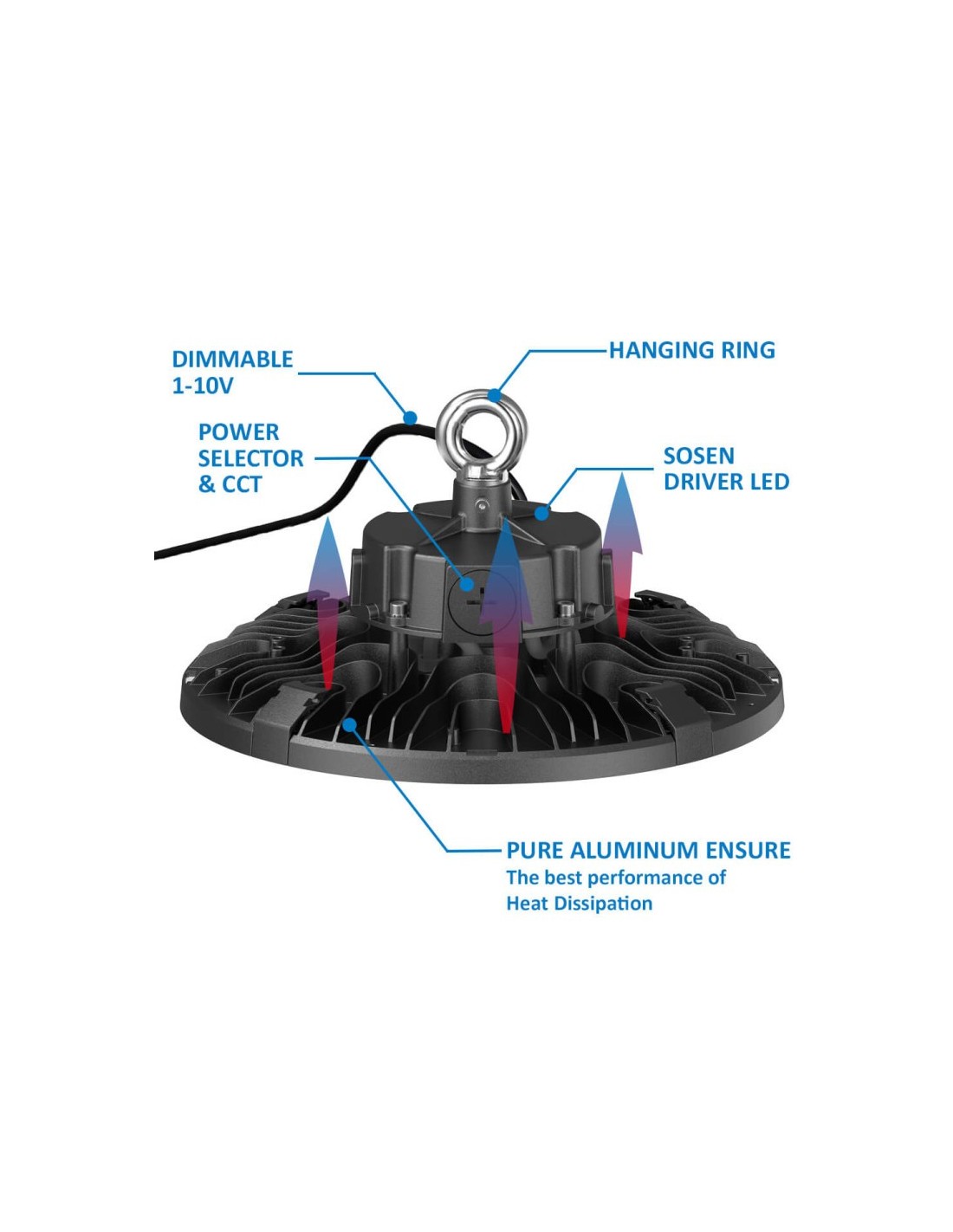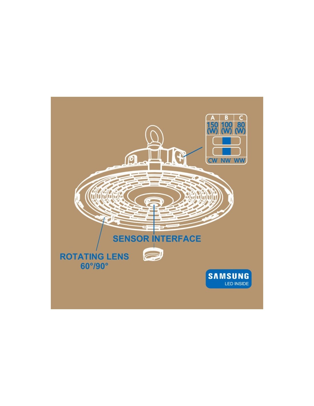LED Hallenstrahler 150W-100W-80W UFO FRANCE - SAMSUNG CHIP 2835 200Lm/W - CCT - ZHAGA PLUG AND PLAY - Winkel 60º-90º