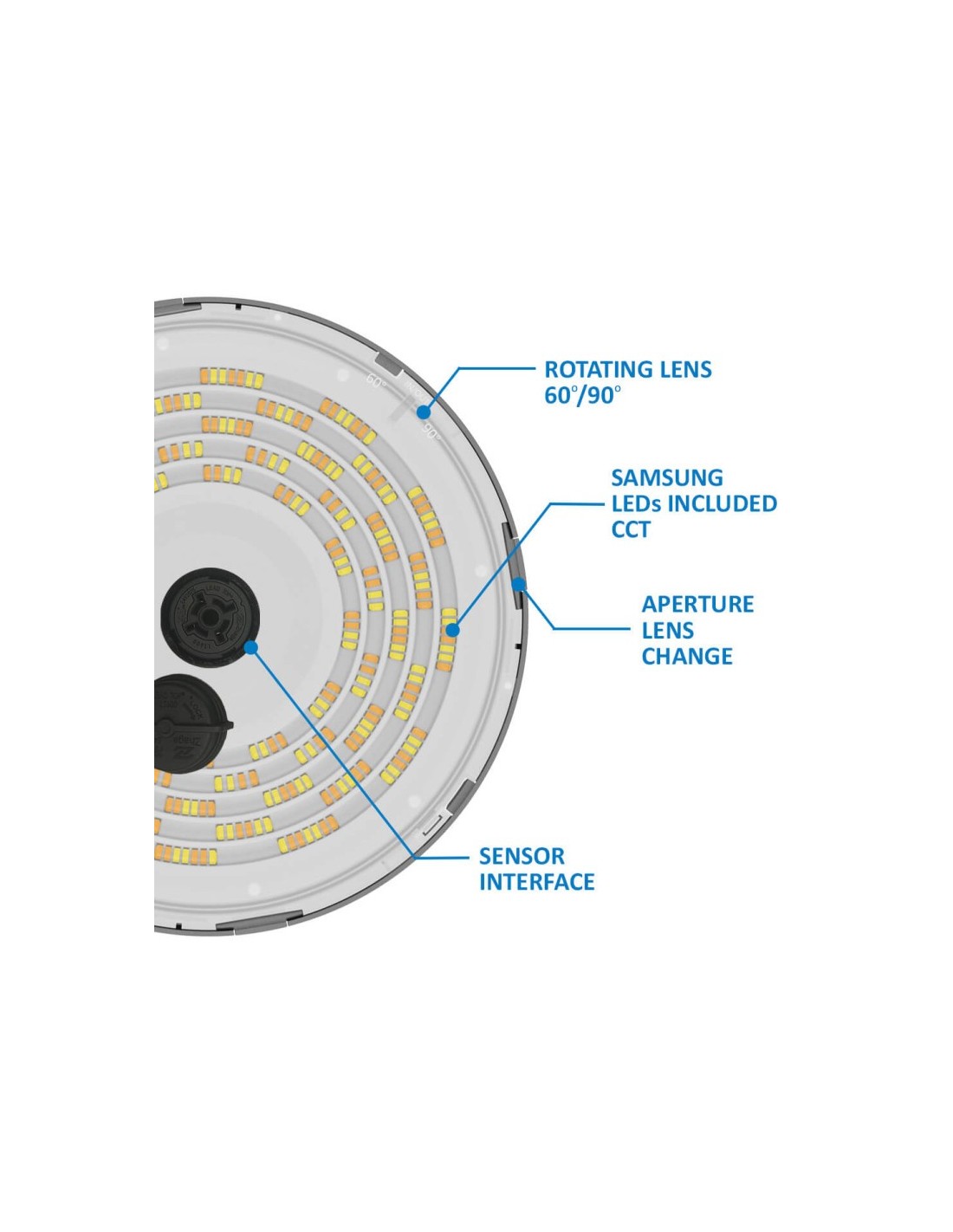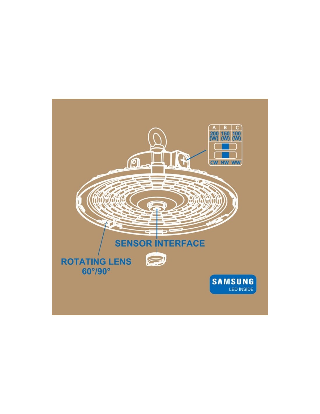 LED Hallenstrahler 200W-150W-100W UFO FRANCE - SAMSUNG CHIP 2835 200Lm/W - CCT - ZHAGA PLUG AND PLAY - Winkel 60º-90º