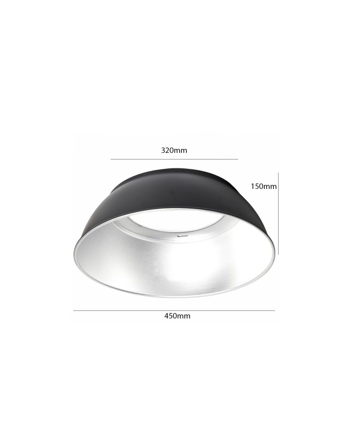 Reflektor, Kappe, Hut, für unsere LED-Haube UFO ENDURANCE 200W. Mit diesem Aluminiumzubehör, das auf die Haube aufgesetzt wird, können Sie den Lichtwinkel auf 60º konzentrieren, wodurch Sie die Leistung auf den gewünschten Bereich konzentrieren können.