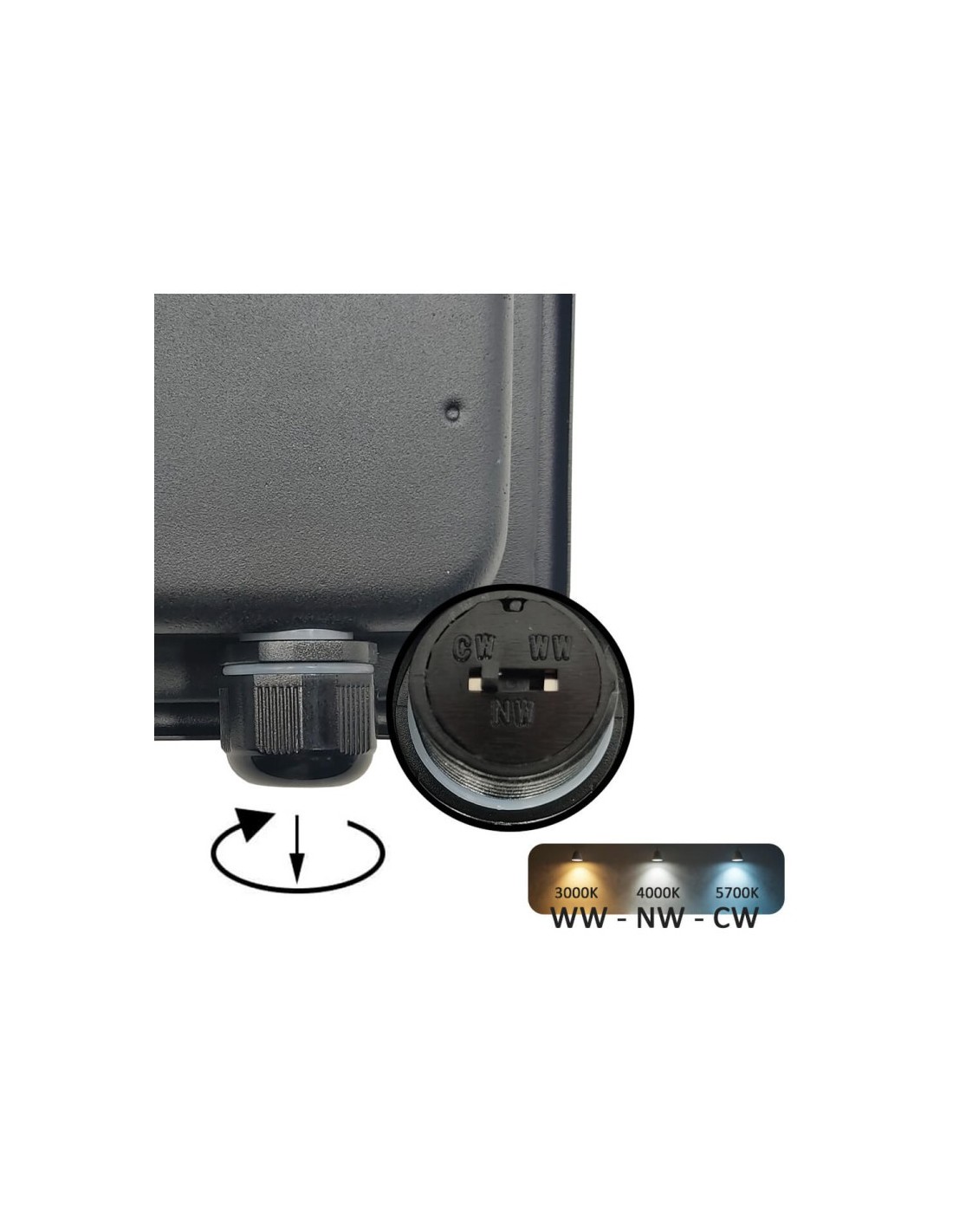 - Farbwahl - CCT: Passen Sie Ihre Beleuchtung mit Leichtigkeit an, dank der Farbauswahlabdeckung. Sie können zwischen drei Farbtemperaturen wählen: 3000K (Warmweiss) für eine gemütliche Atmosphäre, 4000K (Neutralweiss) für eine klare und natürliche Beleuchtung und 5700K (Kaltweiss) für intensives und belebendes Licht. Der Wechsel zwischen diesen Modi ist schnell und einfach und passt die Umgebung an Ihre Bedürfnisse an.