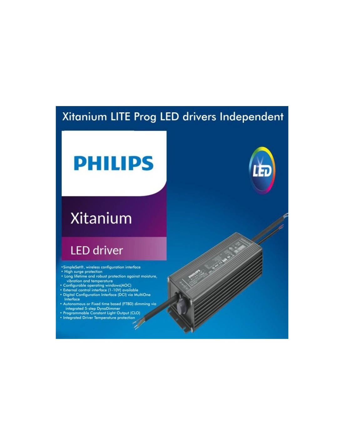 PHILIPS ADJUSTABLE DRIVER: Xitanium LITE Prog LED-Treiber Independent Xi LP 320W 0.7-2.1A S1 WL AUX I230; Vorteile: