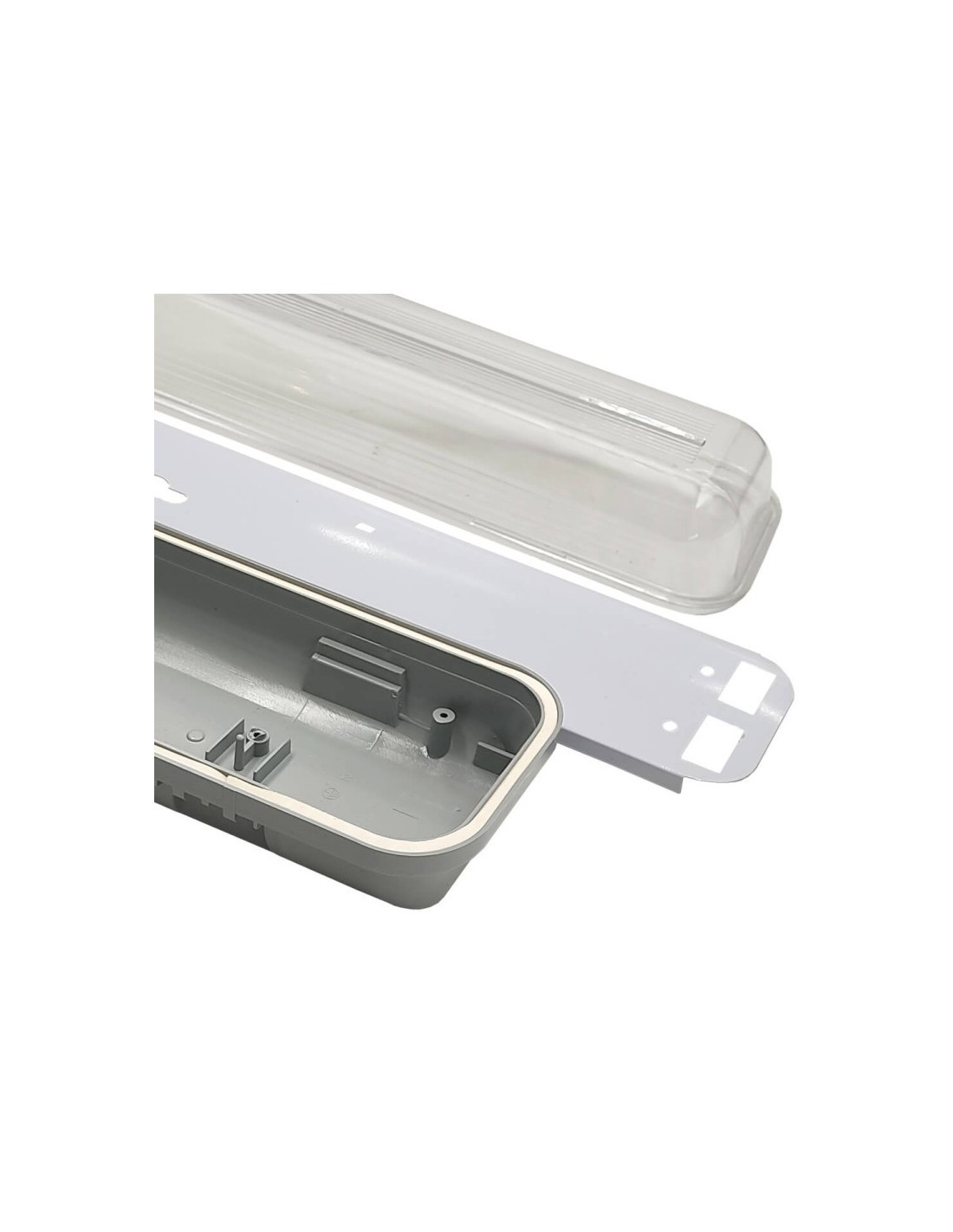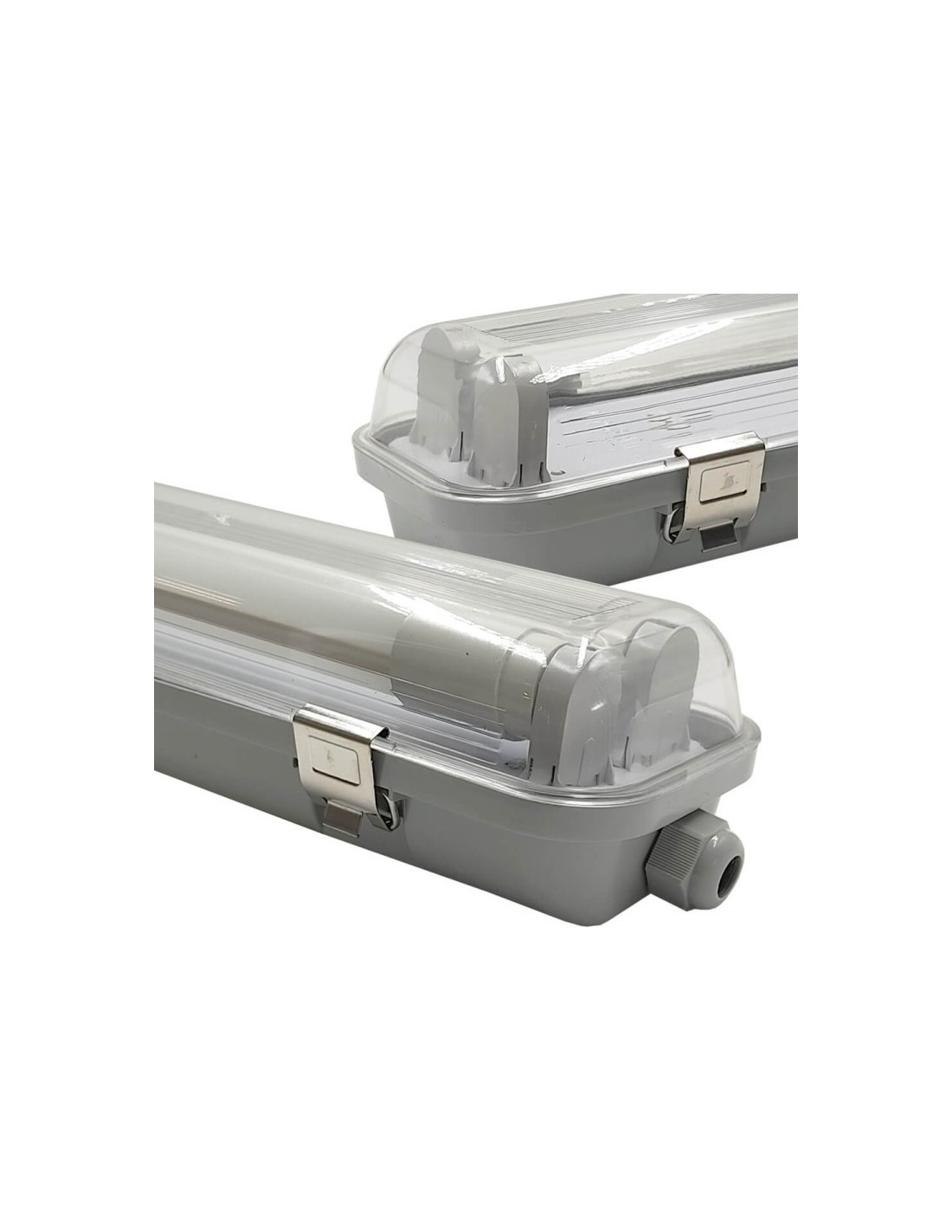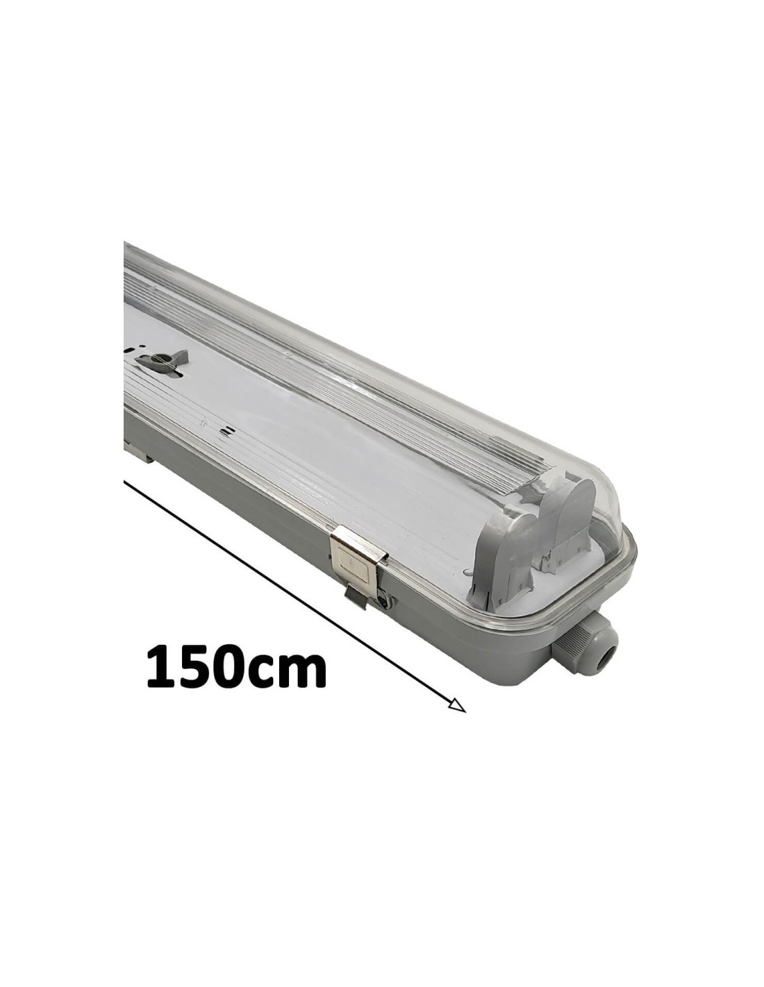 Die wasserdichte Leuchte für zwei LED-Röhren von 150 cm kombiniert Haltbarkeit, Sicherheit und ein funktionales Design, um den Beleuchtungsanforderungen in anspruchsvollen Umgebungen gerecht zu werden. Hergestellt aus hochwertigen Materialien wie ABS und Polycarbonat (PC), ist diese Leuchte stossfest, feuchtigkeits- und staubbeständig und gewährleistet eine optimale Leistung unter schwierigen Bedingungen.