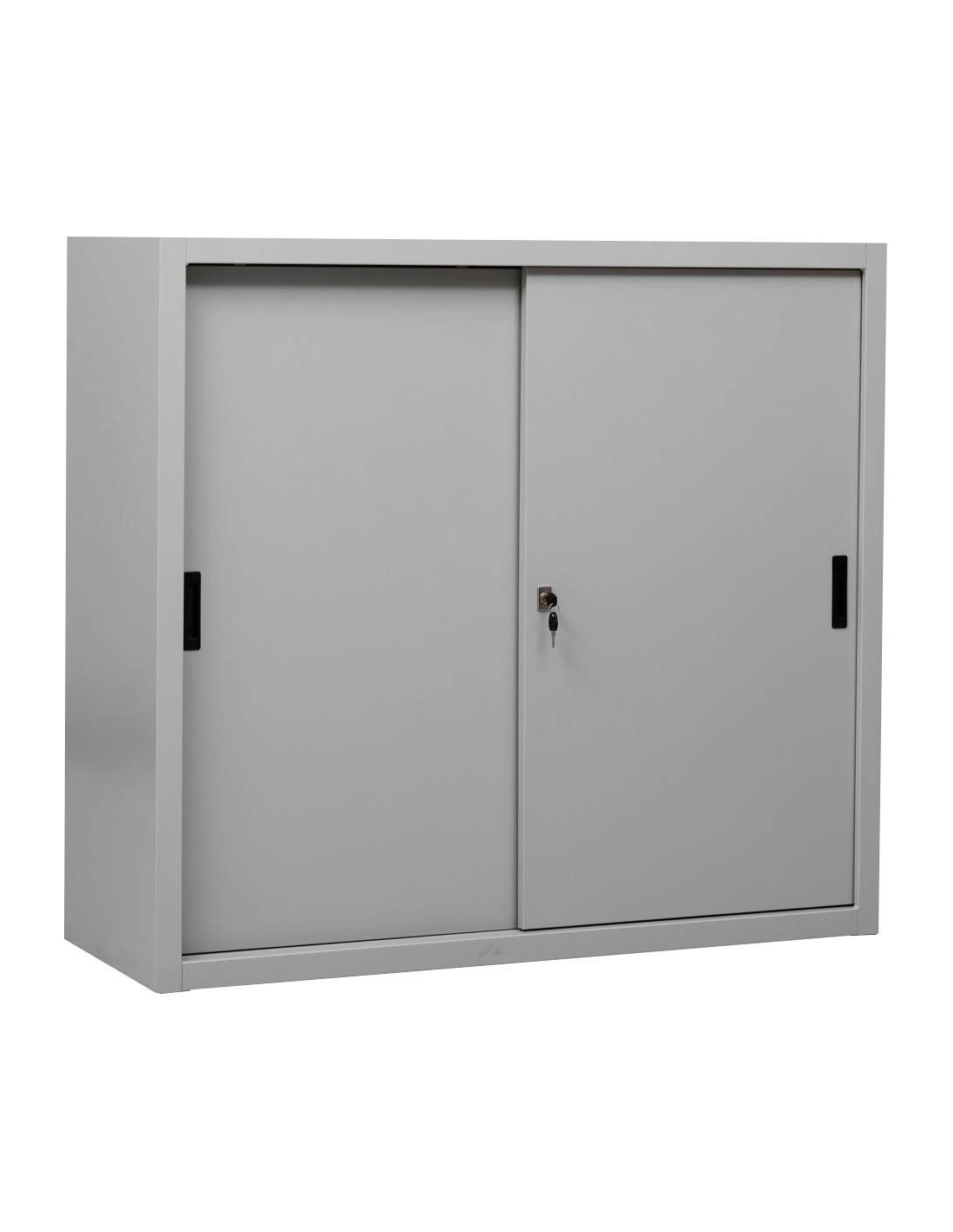 Wolfstahl Schiebetürenschrank Stahl 2 Fachböden lichtgrau 120 x 45 x 109 cm