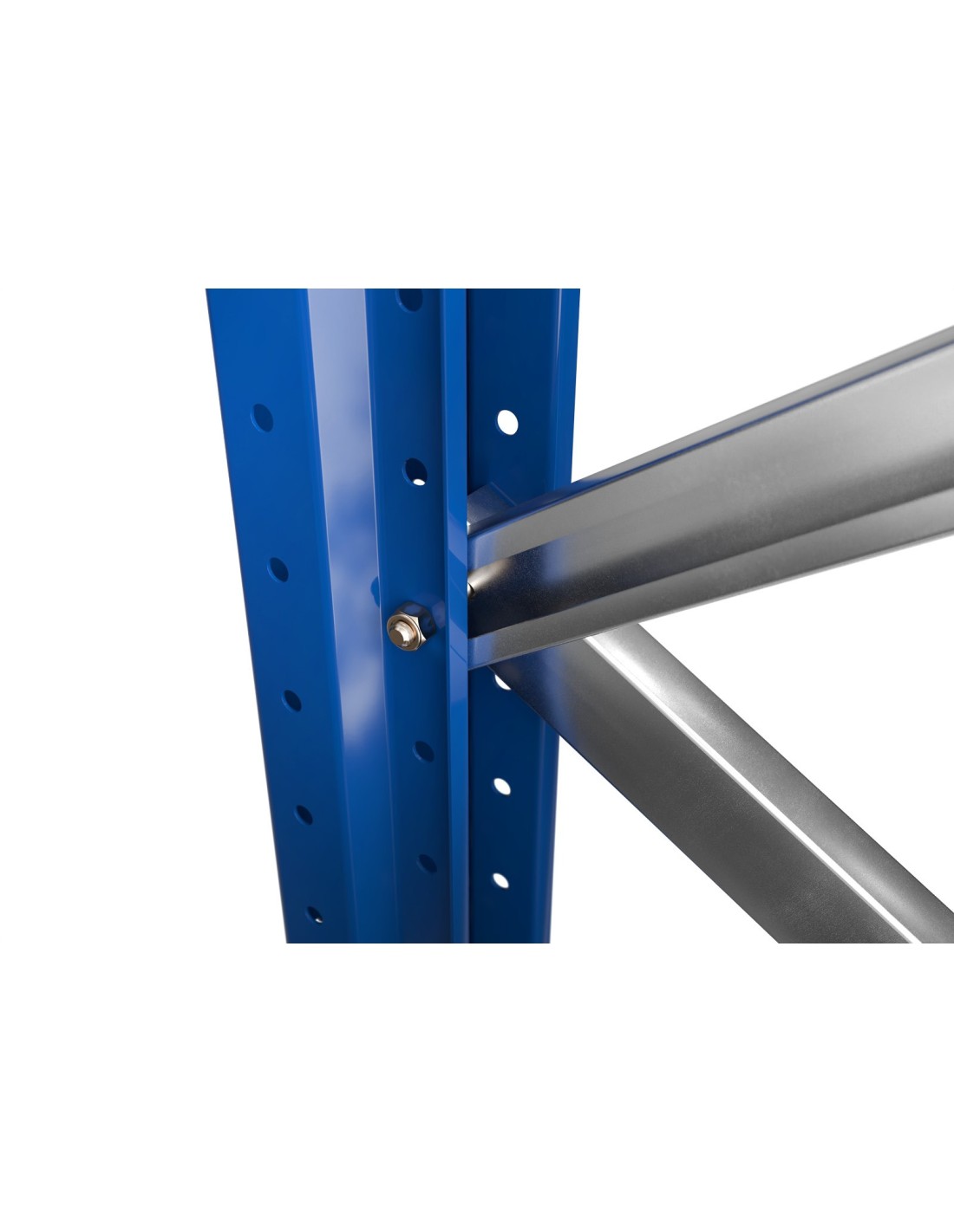 • Stabile Konstruktion: Pulverbeschichtete Ständerprofile in Blau mit Quer- und Diagonalstreben