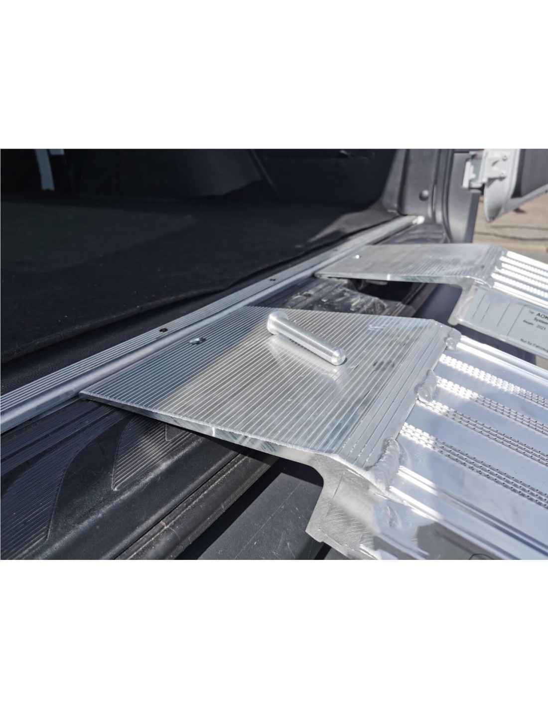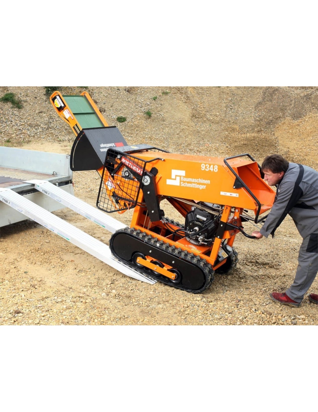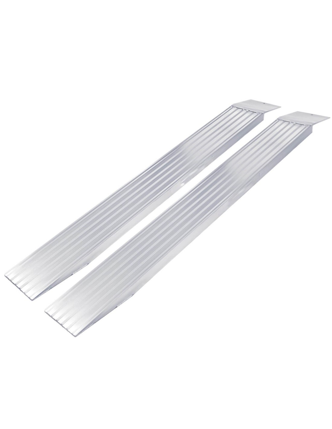Die gewichtsoptimierten Schienen aus dem SuperLeicht- Programm dienen zum Verladen von kleineren Geräten im Garten- und Landschaftsbau oder von leichteren Fahrzeugen wie Motorrädern. Die leichte Verladerampe mit Rand ist aus hochfestem Aluminium-Strangpressprofil und optimiert das Verhältnis von Tragkraft und Eigengewicht. Die Schienen sind rutschfest profiliert und können mit einem Bolzen-Set gegen Abrutschen gesichert werden. Die Ausführung ohne Rand ist optimal für leichtes Gerät mit Gummiketten oder für Rasenmäher-Traktoren. Das extralange Auflager überbrückt die Stossstange oder Kunststoffverkleidung bei gängigen Transportfahrzeugen wie Sprinter oder Transit.