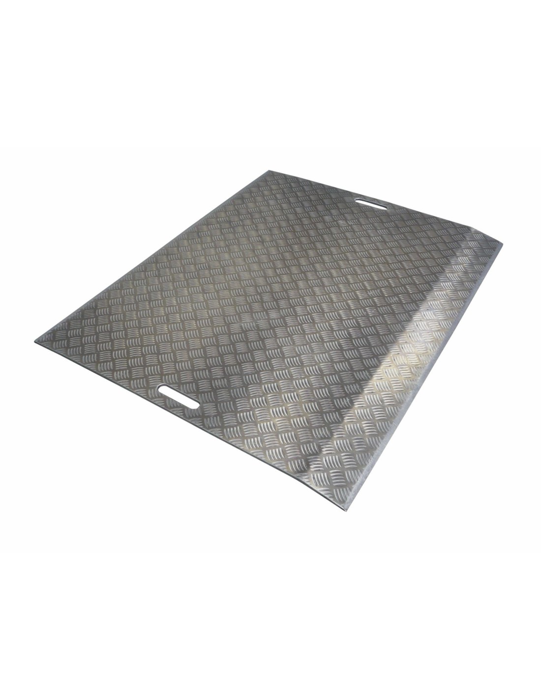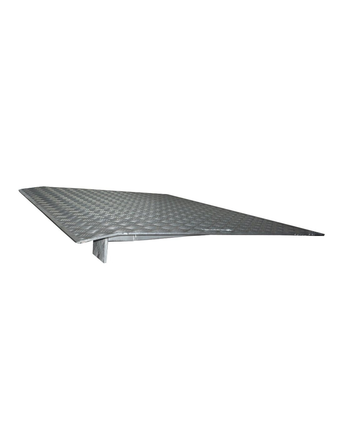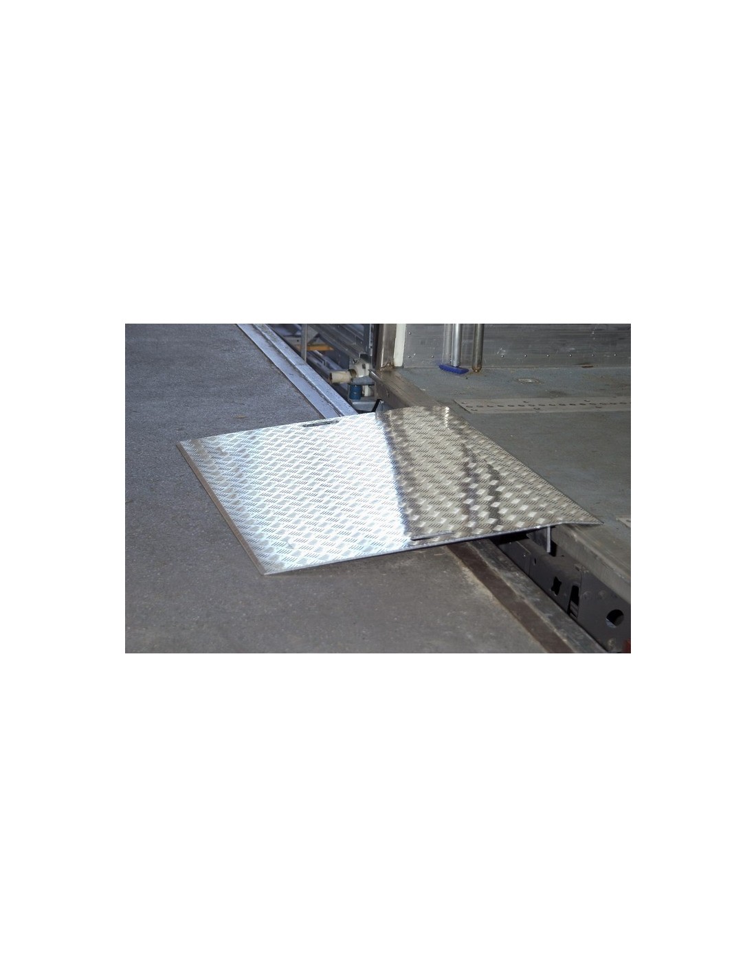 Die überfahrbaren Brücken aus Aluminium schließen den Spalt zwischen Fahrzeug und Rampe. Die leichten und hochfesten Alubleche haben eine rutschfeste Oberfläche aus Duett-Warzenblech. Sie werden im Fahrzeug mitgeführt und ersetzen fest montierte Rückladen. Sie können von einer Person allein positioniert und mit Hubwagen bis 1.200 kg überfahren werden. Durch eine Kantung im vorderen Bereich können sie Höhenunterschiede bis zu 225 mm ausgleichen.