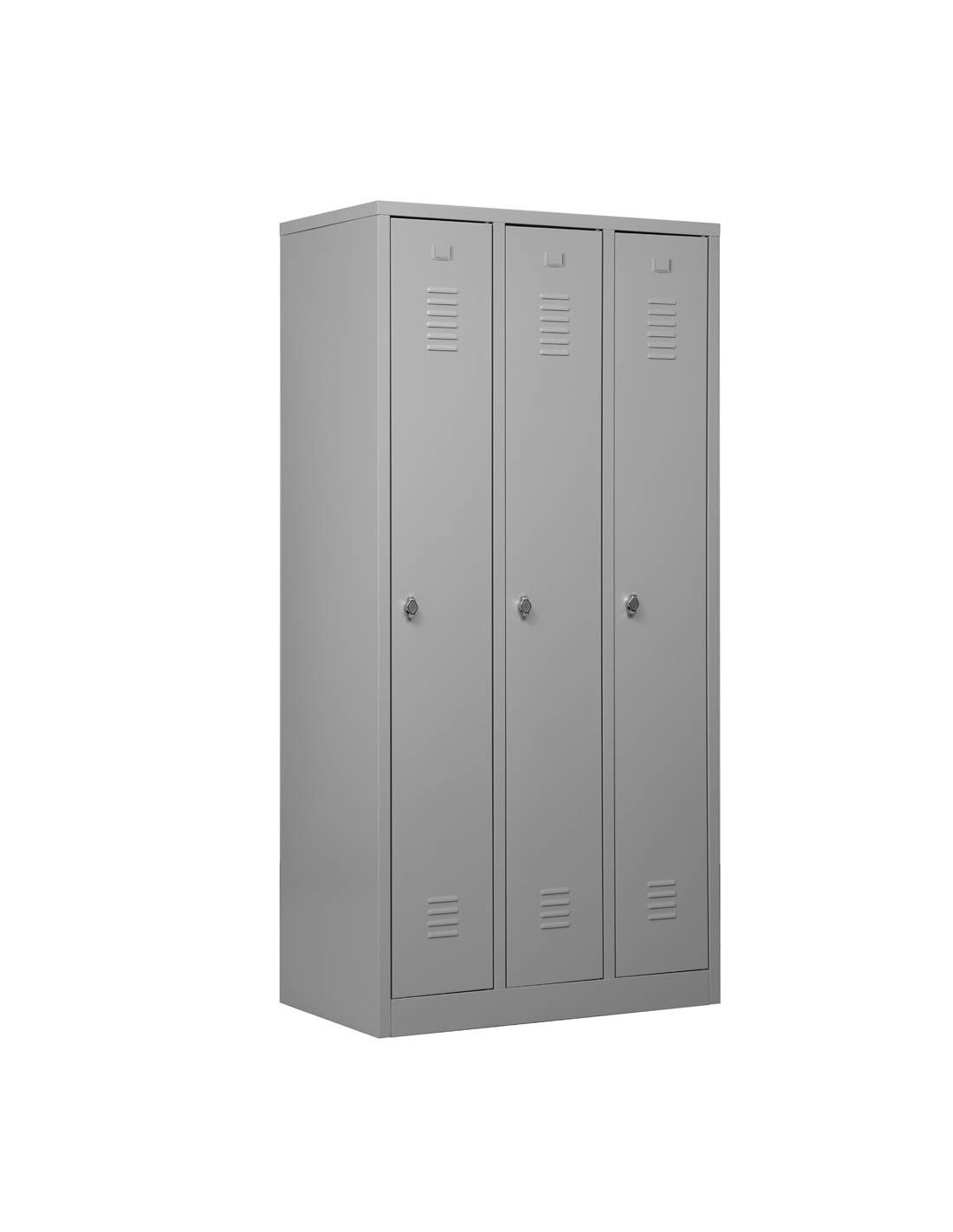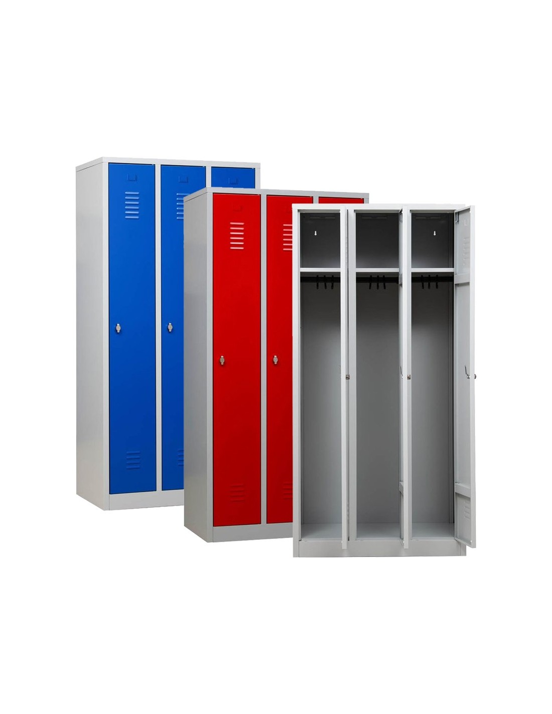 Wolfstahl Garderobenschrank Kleiderspind 3 Schliessfächer Lichtgrau - Feuerrot - Enzianblau