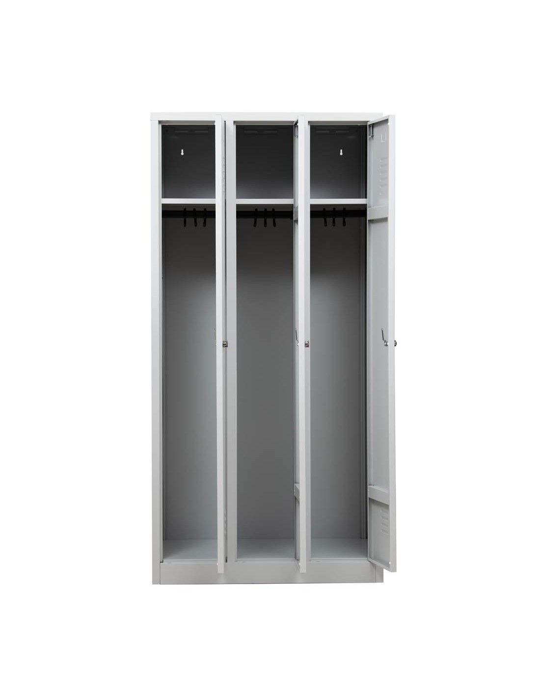 Mit dem Wolfstahl Spind, 3 Schliessfächer sind Sie optimal ausgestattet, denn er bietet Mitarbeitern, Schülern oder Kunden die Möglichkeit, Ihre persönlichen Wertgegenstände aufzubewahren und vor unbefugtem Zugriff zu schützen. Für folgende Einsatzbereiche ist dieses Modell hervorragend geeignet: Schule, Sporthalle, Umkleidekabine, Universität, Werkstatt.